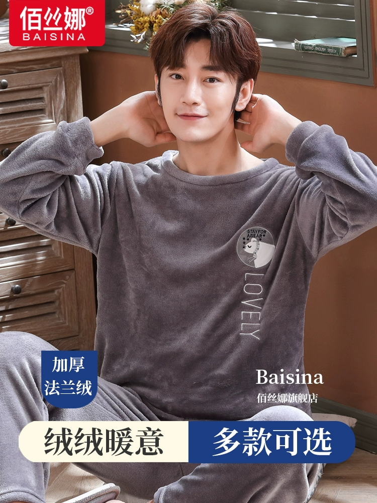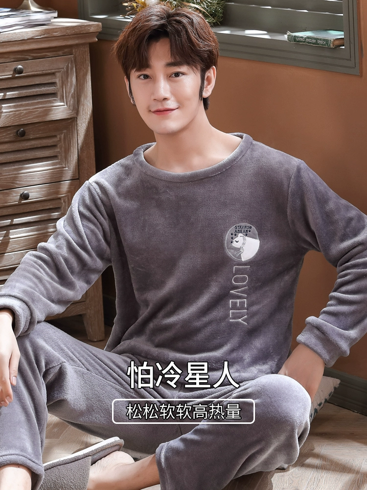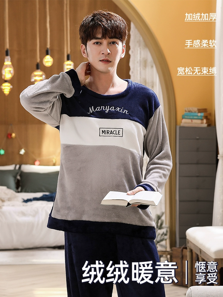 | nameOriginal | Pajamas for men in winter thickened and velvet men's coral velvet men's long-sleeved flannel autumn and winter warm home clothes set |