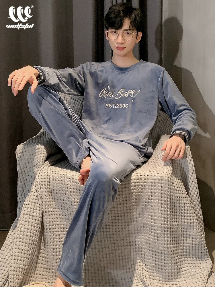 | nameOriginal | Pajamas for men, island velvet long sleeves, autumn and winter plus velvet, coral velvet, warm flannel, thin velvet, men's home wear set |