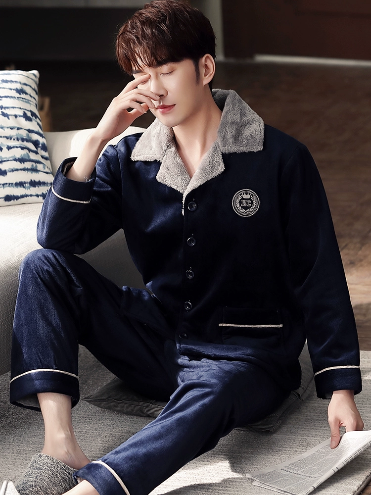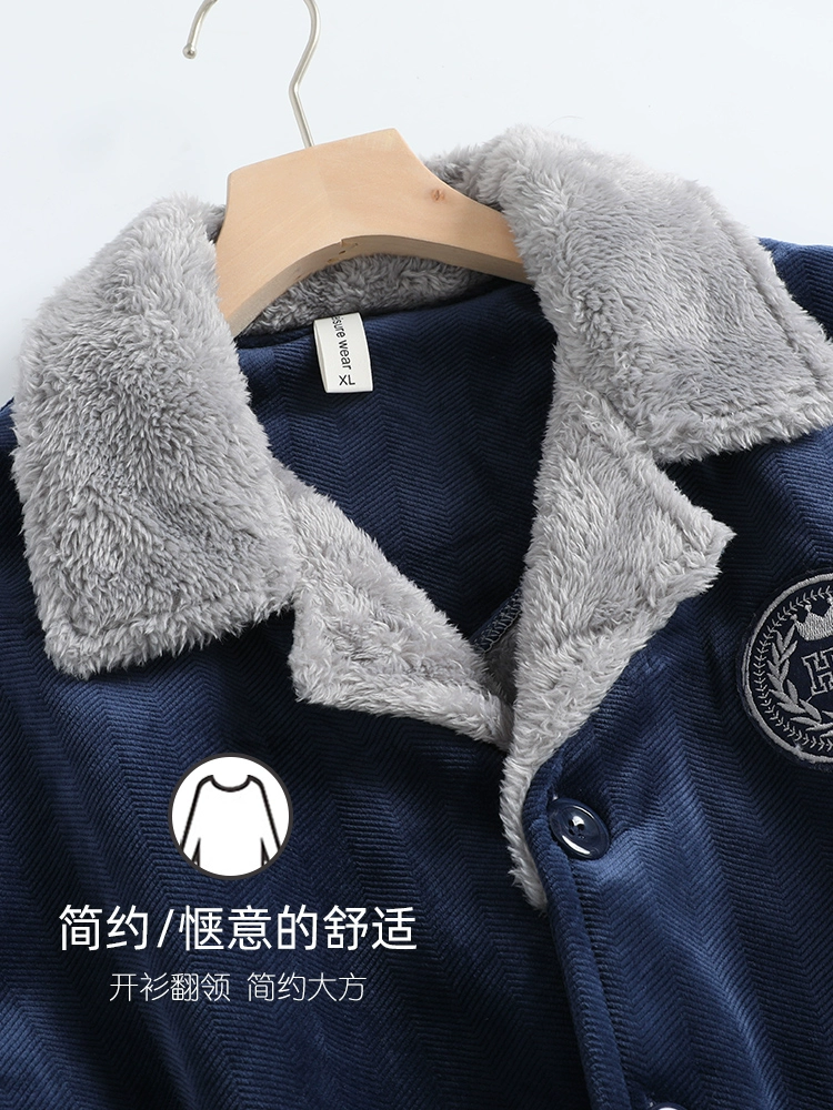 Pajamas for men winter coral velvet double layer thickened plus velvet warm flannel autumn and winter large size home wear set