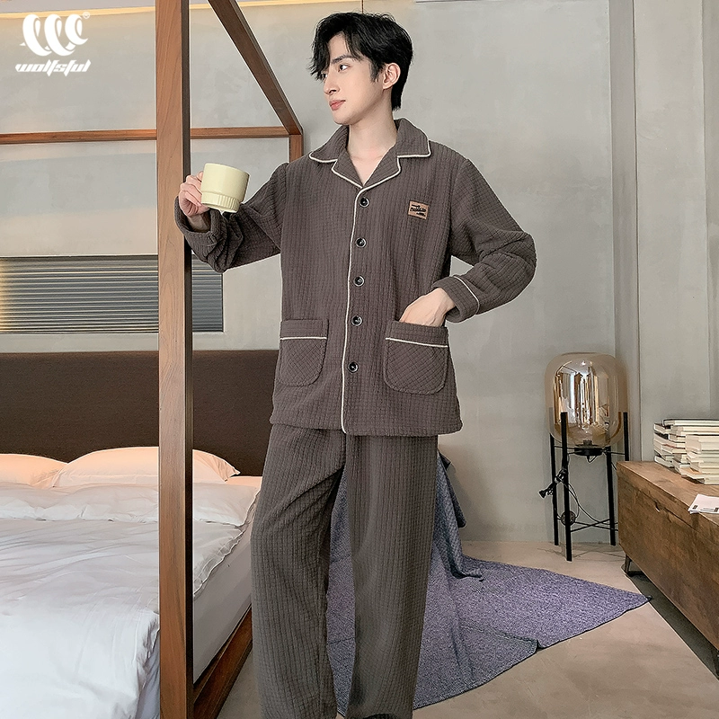 | nameOriginal | Pajamas for men winter coral velvet thickened velvet men's flannel winter men's autumn and winter home clothes set |