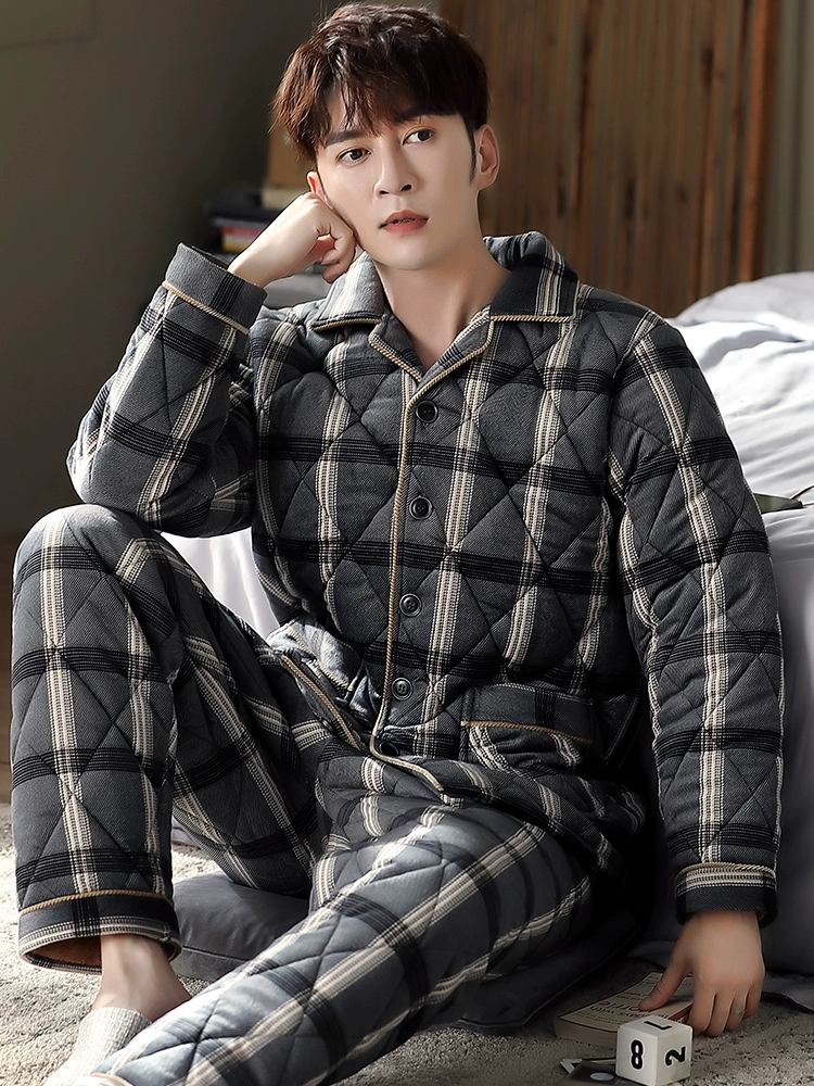 | nameOriginal | Pajamas for men winter coral velvet three-layer thickened plus velvet quilted jacket autumn and winter warm flannel winter home clothes |
