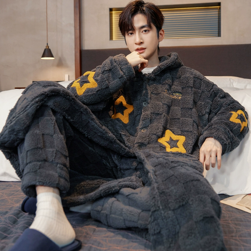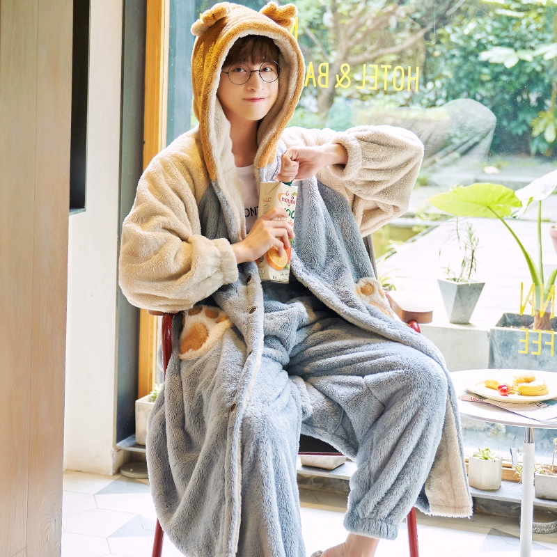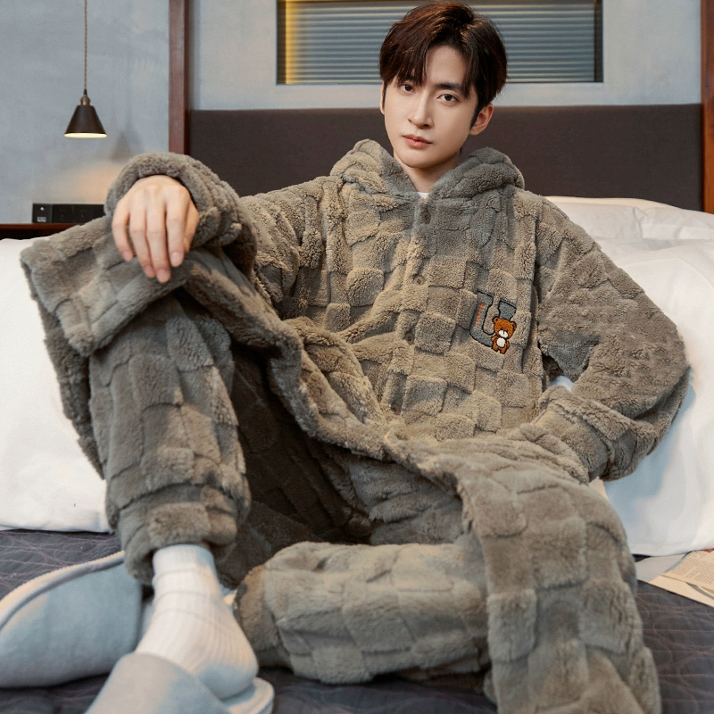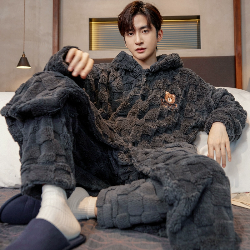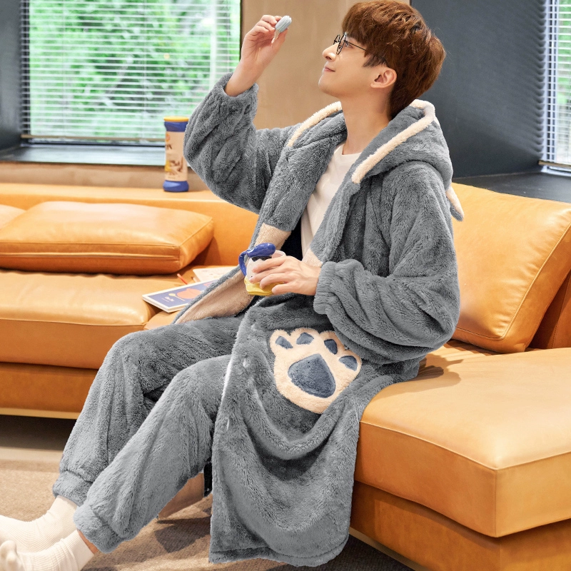 | nameOriginal | Pajamas for men winter men's coral velvet plus velvet thickened 2024 new winter bear paw print pajamas for men autumn and winter |