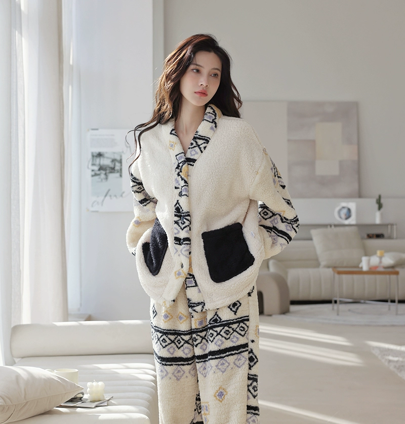 | nameOriginal | Pajamas for women 2023 new autumn and winter coral velvet plus thickened Internet celebrity style plush can be worn outside home clothes set |