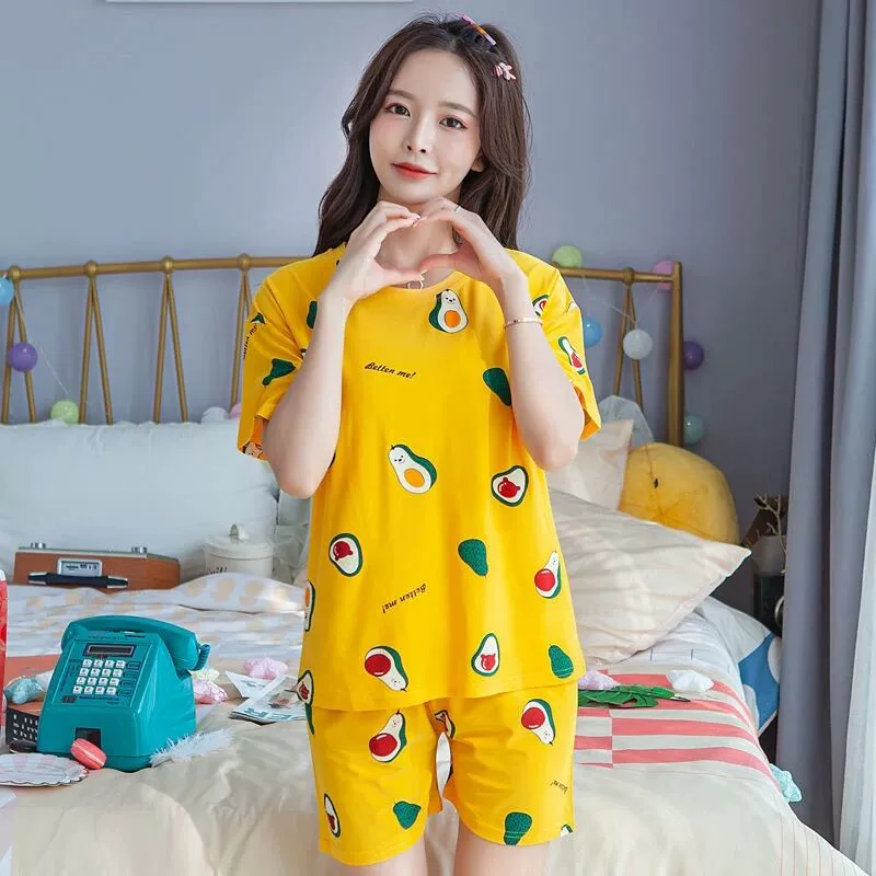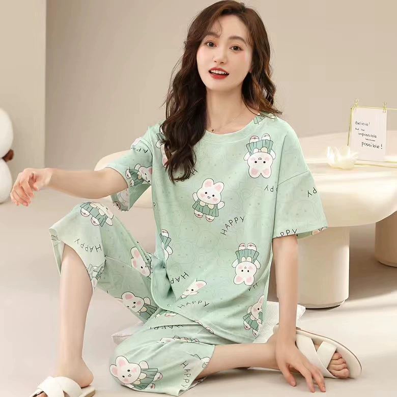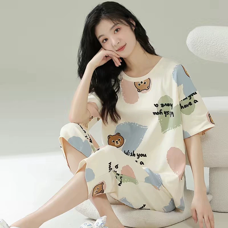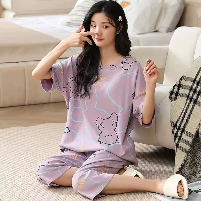 | nameOriginal | Pajamas for women 2024 new summer pure cotton short-sleeved cropped pants women's home wear two-piece suit summer thin style |