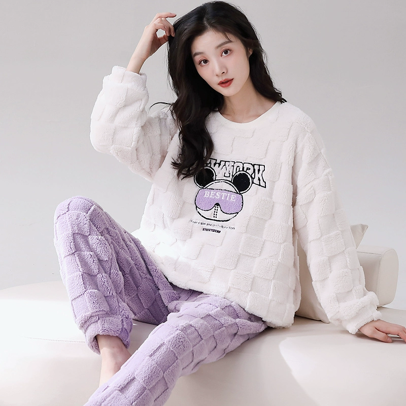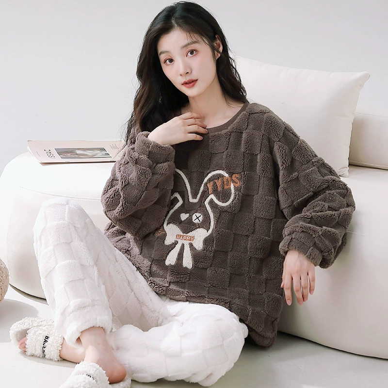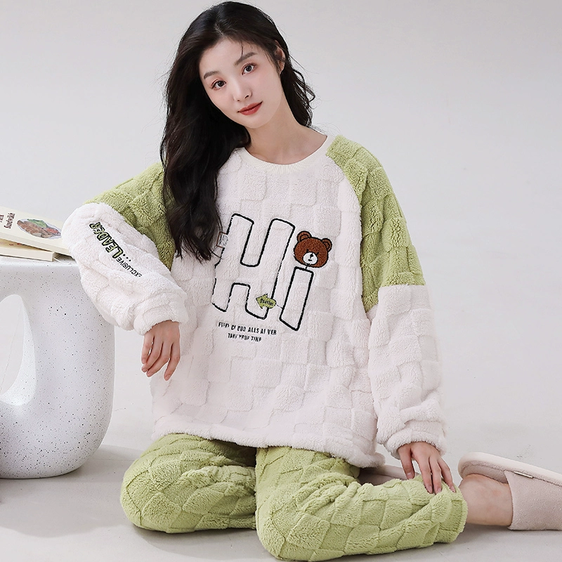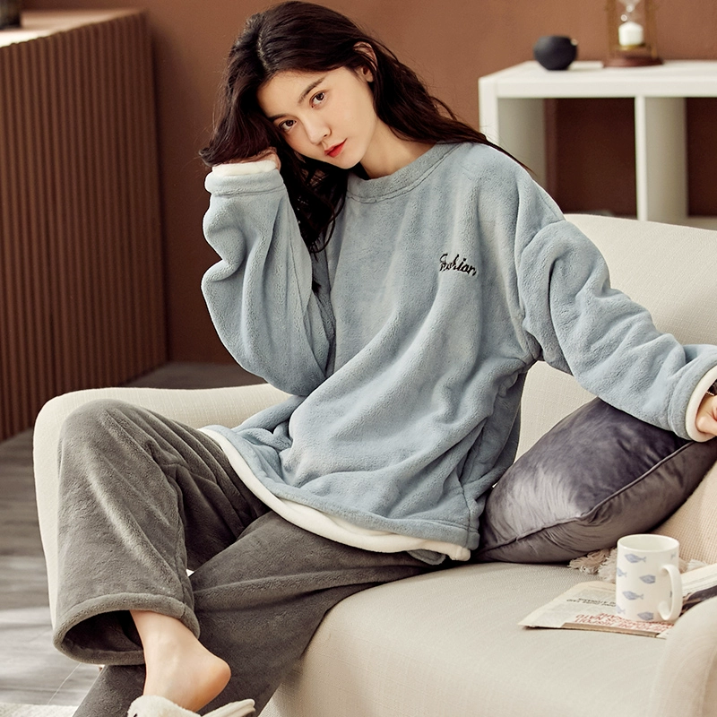 | nameOriginal | Pajamas for women autumn and winter coral velvet plus velvet thickened flannel autumn and winter women's color block home clothes winter |