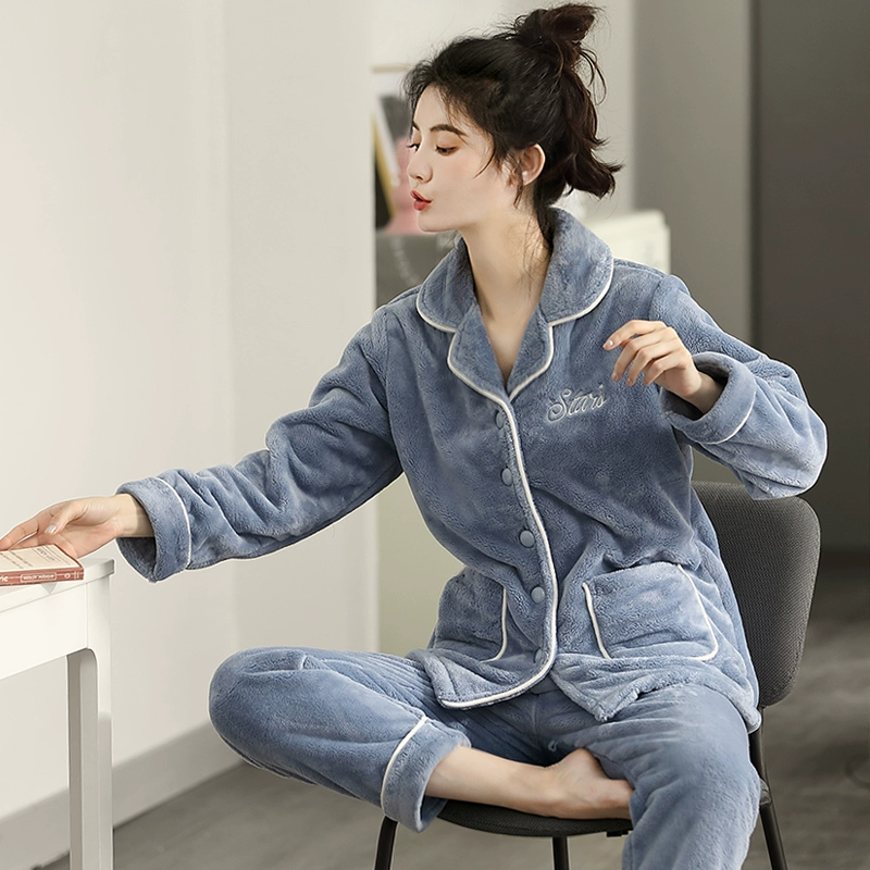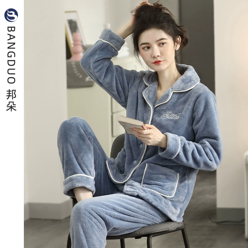 Pajamas for women autumn and winter flannel thickened velvet winter coral velvet warm women's home clothes winter winter set