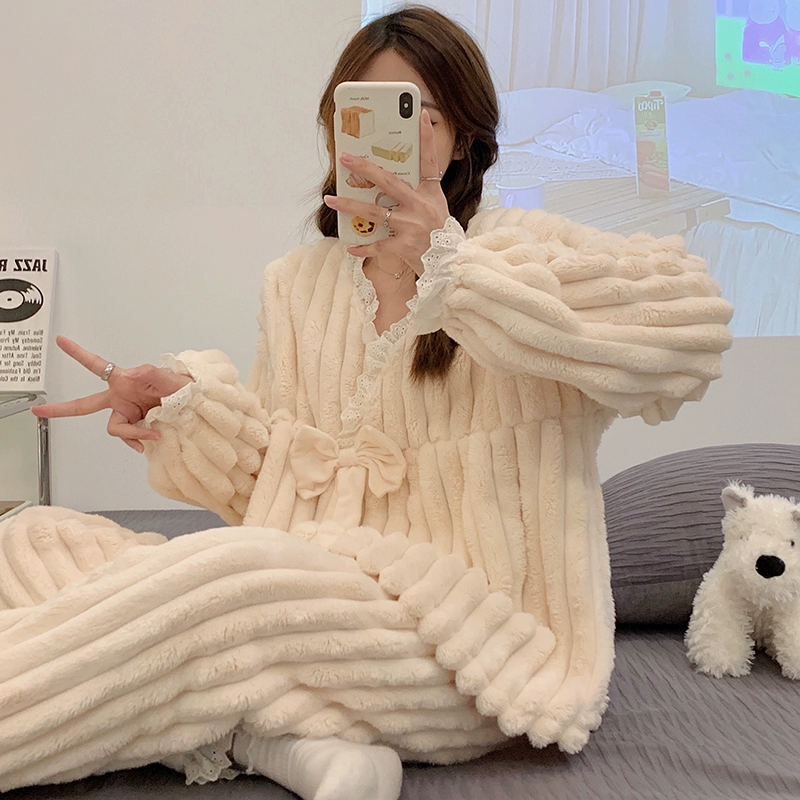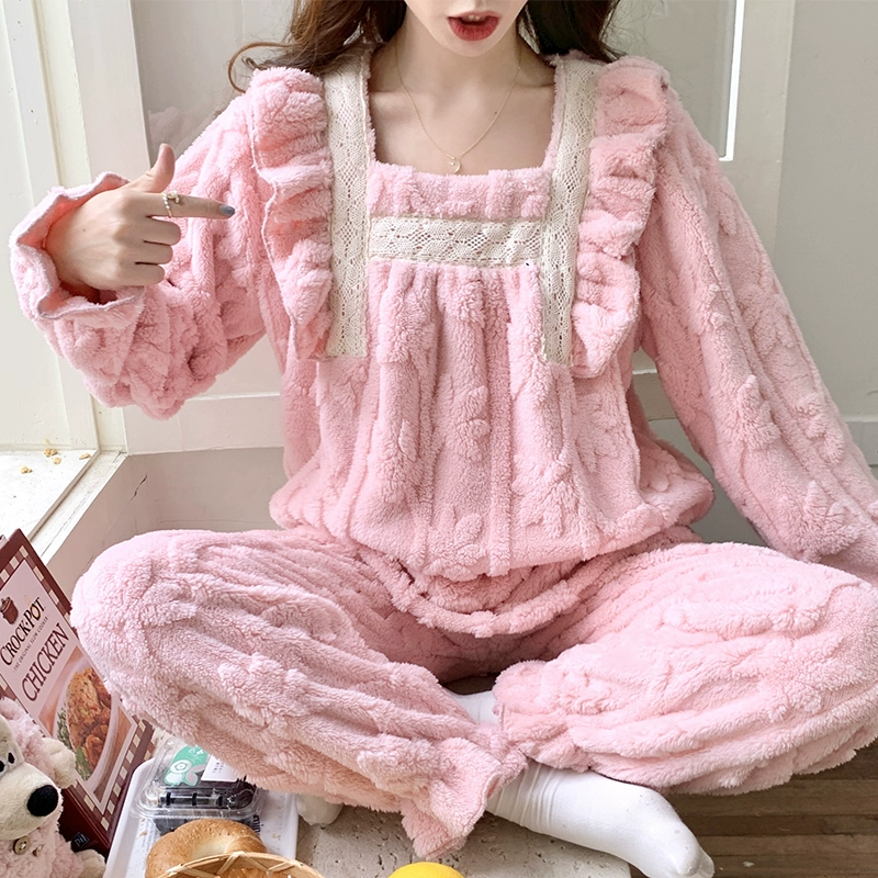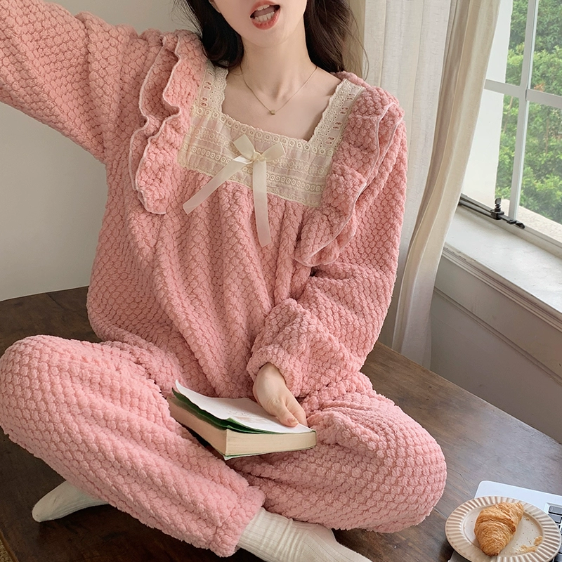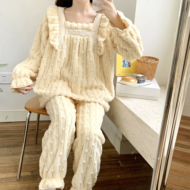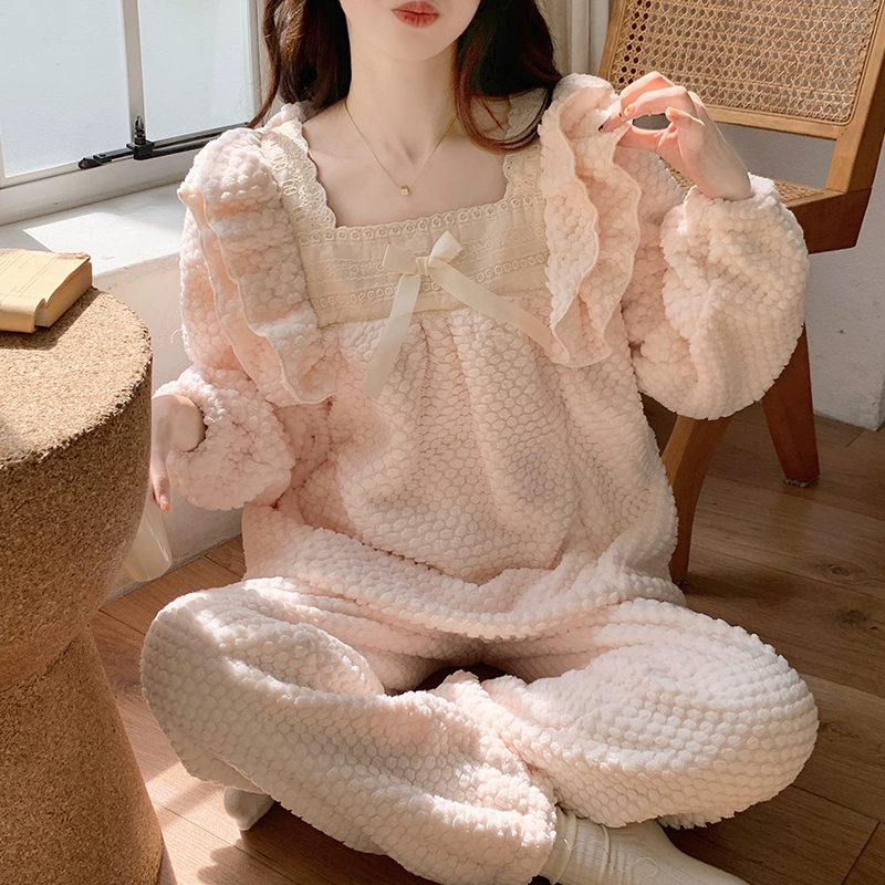 | nameOriginal | Pajamas for women autumn and winter thickened velvet coral velvet home clothes 2024 new flannel princess style suit |