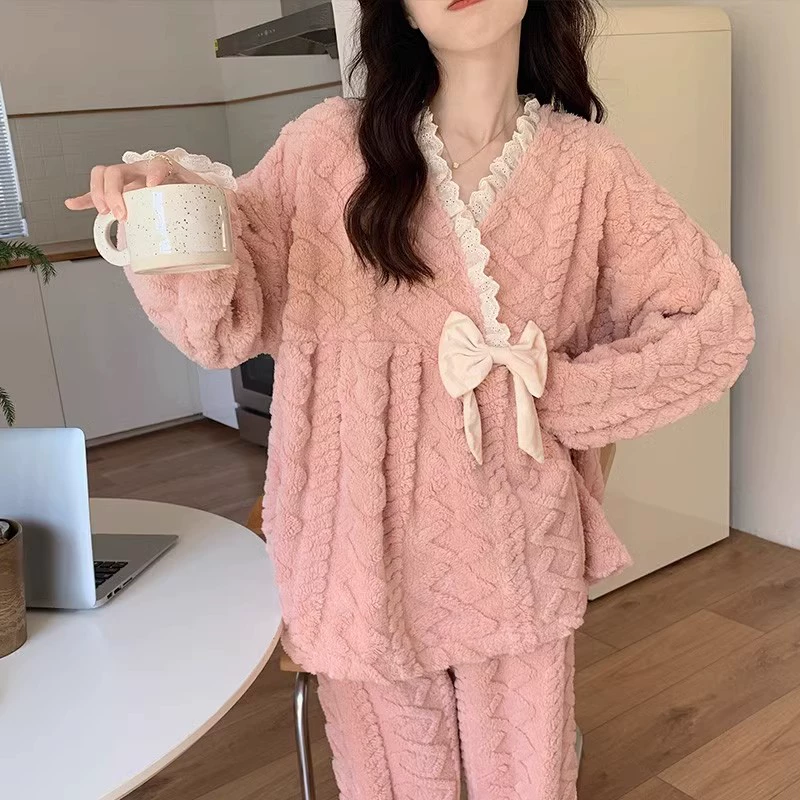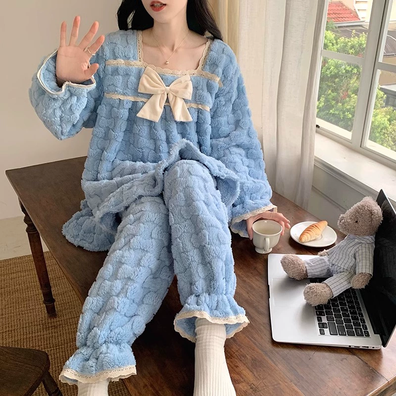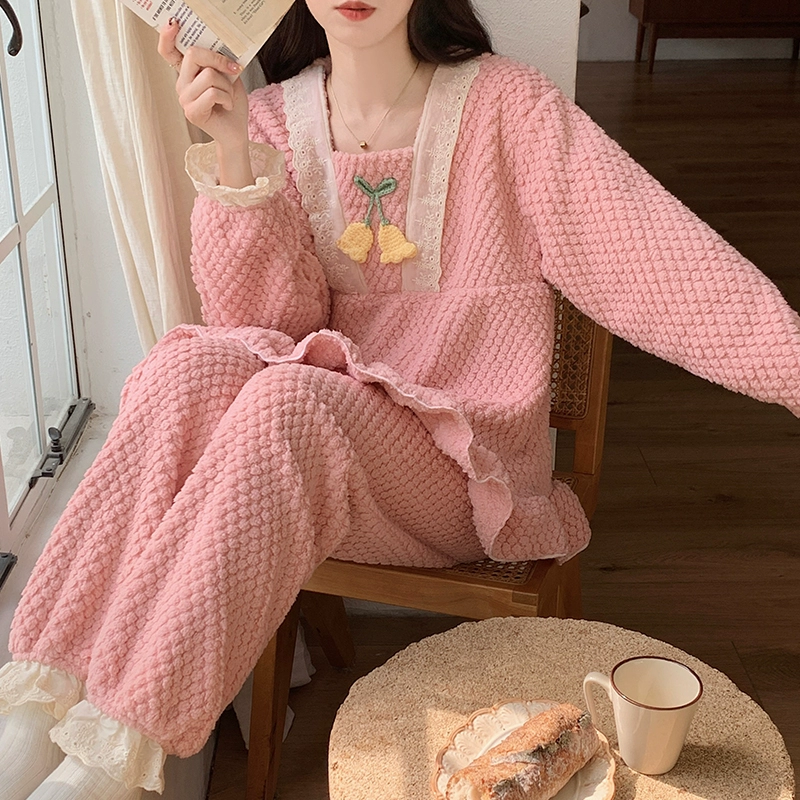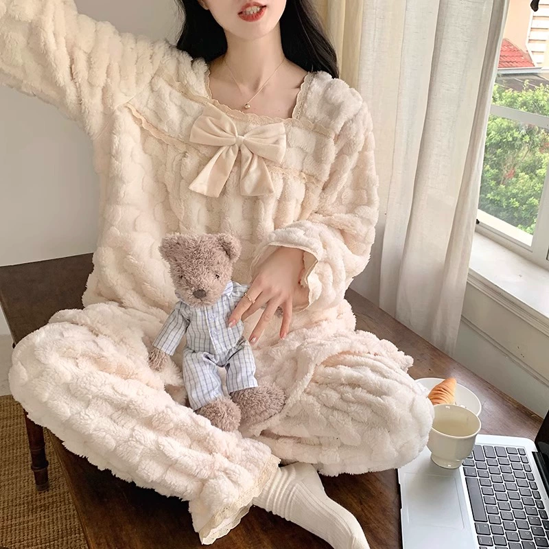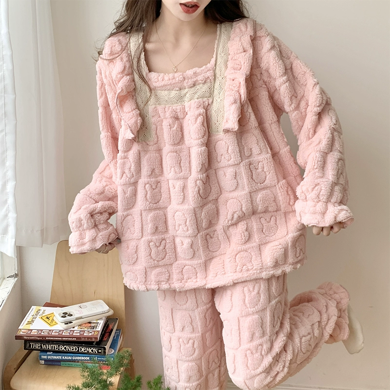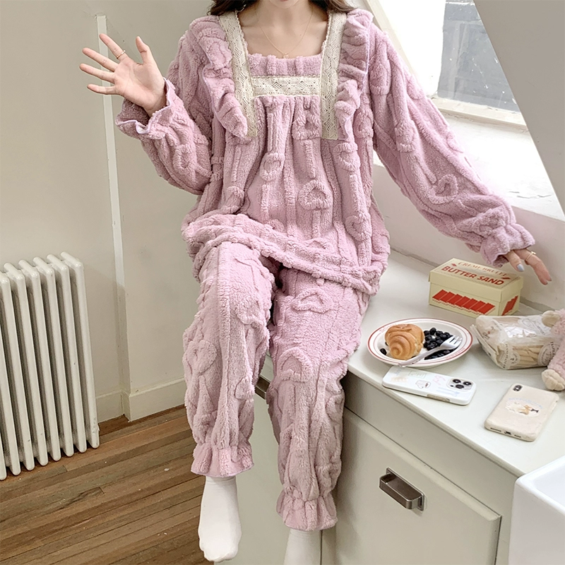 | nameOriginal | Pajamas for women autumn and winter thickened velvet coral velvet home clothes 2024 new flannel princess style suit |