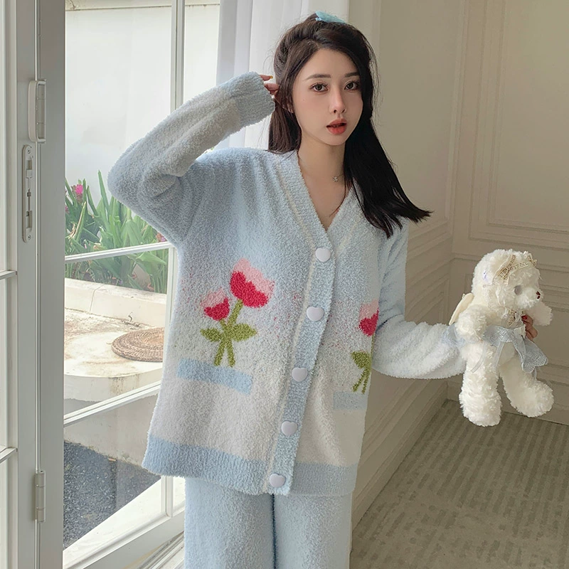 | nameOriginal | Pajamas for women, autumn and winter, thickened with velvet, soft cardigan, half velvet, feather yarn, can be worn outside as home clothes |