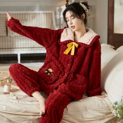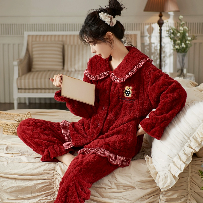 | nameOriginal | Pajamas for women in autumn and winter, coral velvet and velvet, thick red, autumn and winter princess style home clothes for winter |