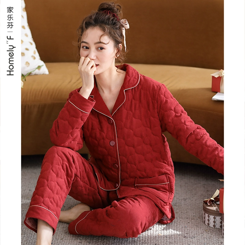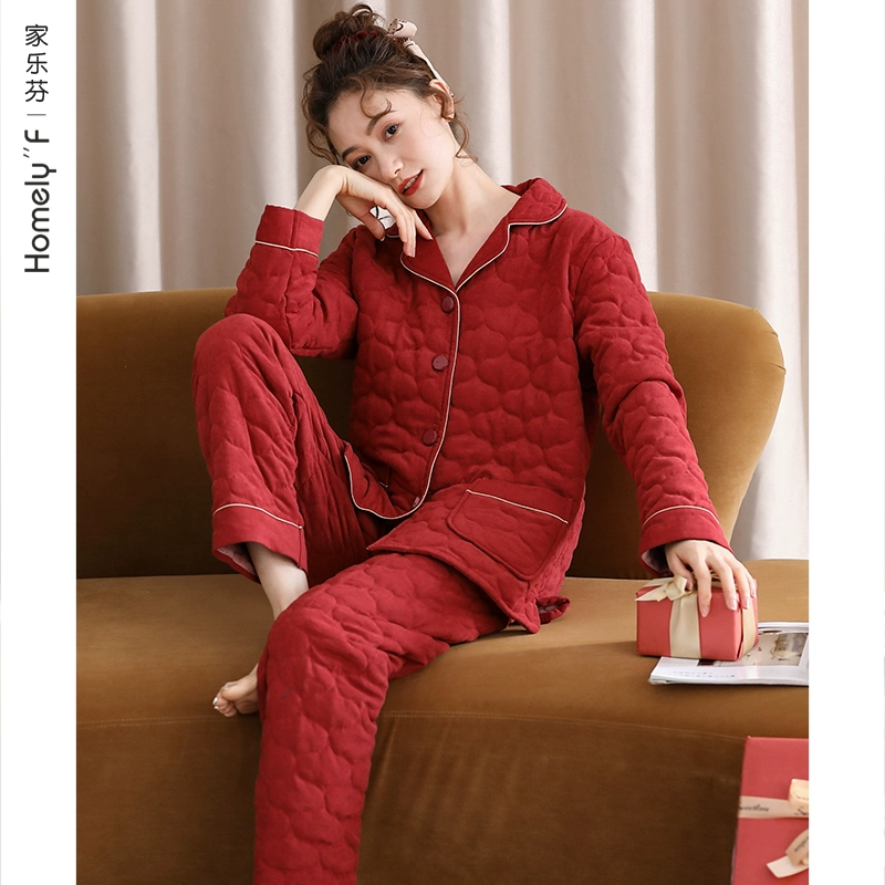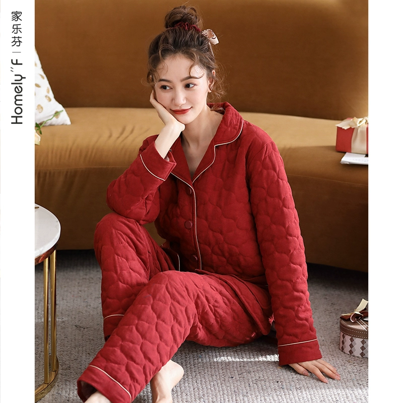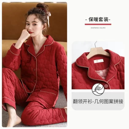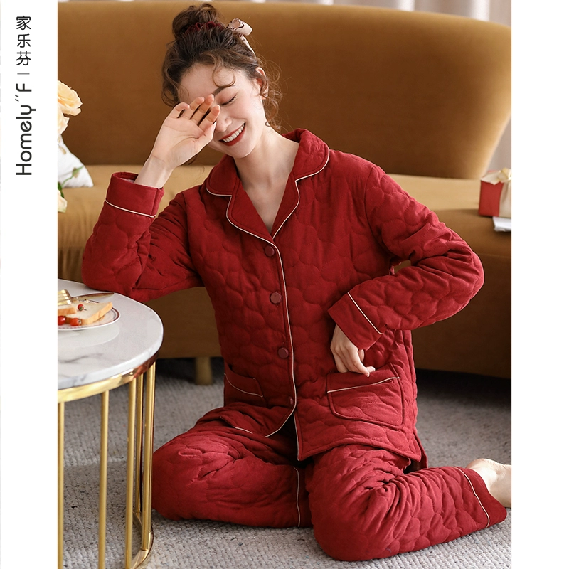 Pajamas for women in autumn and winter, coral velvet thickened plus velvet quilted jacket to keep warm, bright red home clothes for the year of your birth year