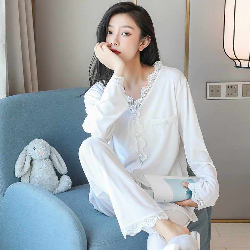 | nameOriginal | Pajamas for women in autumn and winter, cute and sexy Korean style suits for women, long-sleeved plus velvet thin gold velvet spring and autumn home clothes |