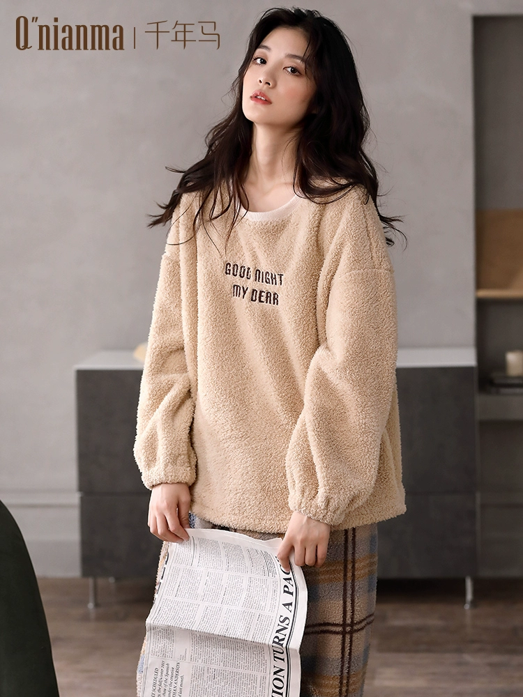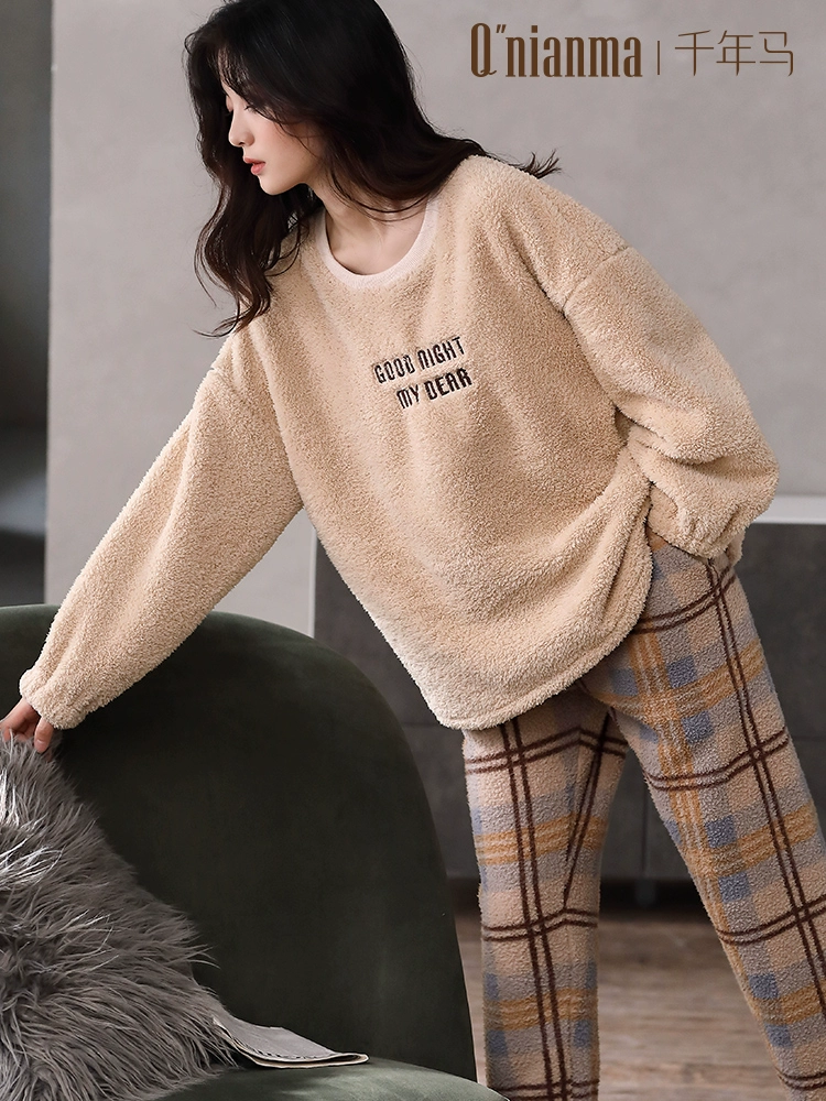 Pajamas for women in autumn and winter flannel thickened plus velvet Japanese style pullover coral velvet home clothes 2024 new set