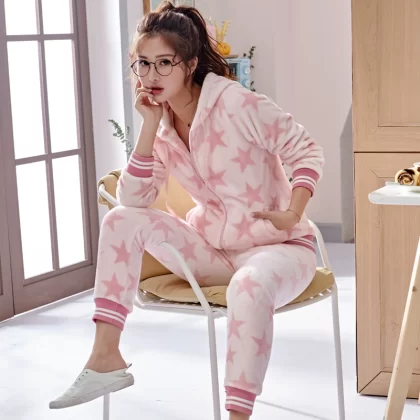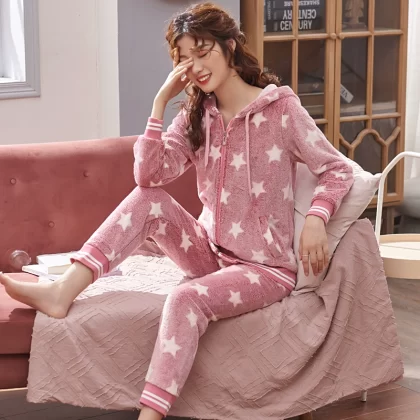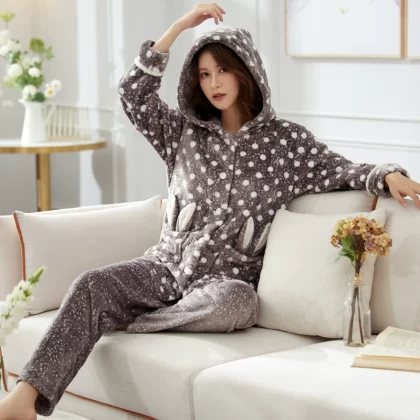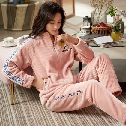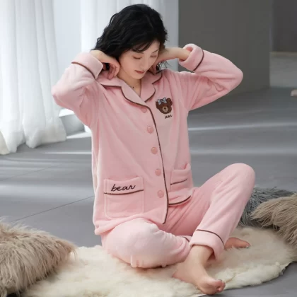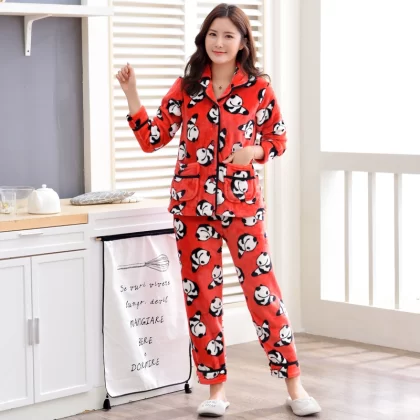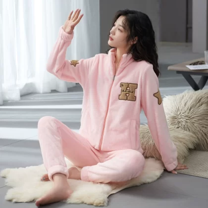 | nameOriginal | Pajamas for women in autumn and winter, thickened coral velvet, cute and warm, large size, can be worn outside, flannel home clothes set |