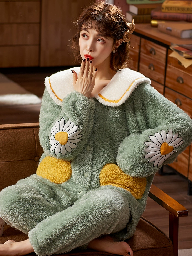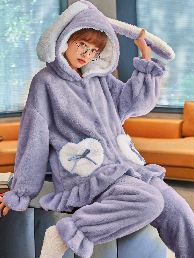 | nameOriginal | Pajamas for women in autumn and winter thickened velvet coral velvet cute plush winter flannel new home wear set |