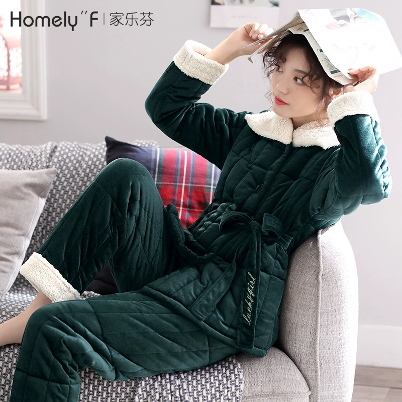 | nameOriginal | Pajamas for women in autumn and winter, three-layer thickened quilted jacket, coral velvet plus velvet, warm flannel home wear set |