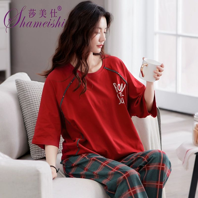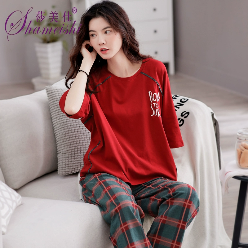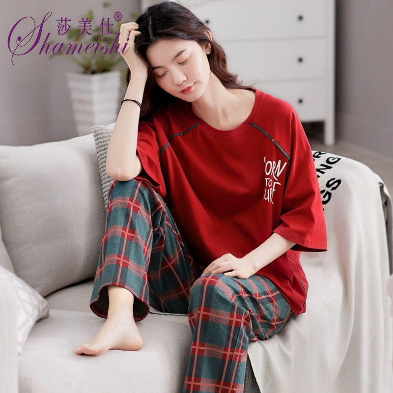 | nameOriginal | Pajamas for women in spring, autumn and summer, thin pure cotton short-sleeved trousers, Korean style loose home clothes, casual suits for going out |