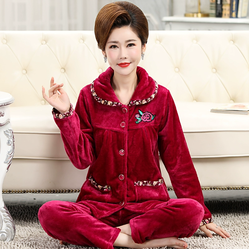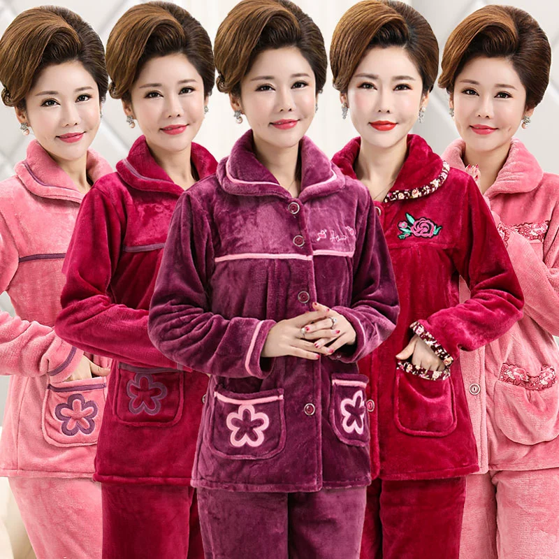 | nameOriginal | Pajamas for women in winter thickened coral velvet mothers middle-aged and elderly plus velvet suits autumn and winter flannel plus size home clothes |