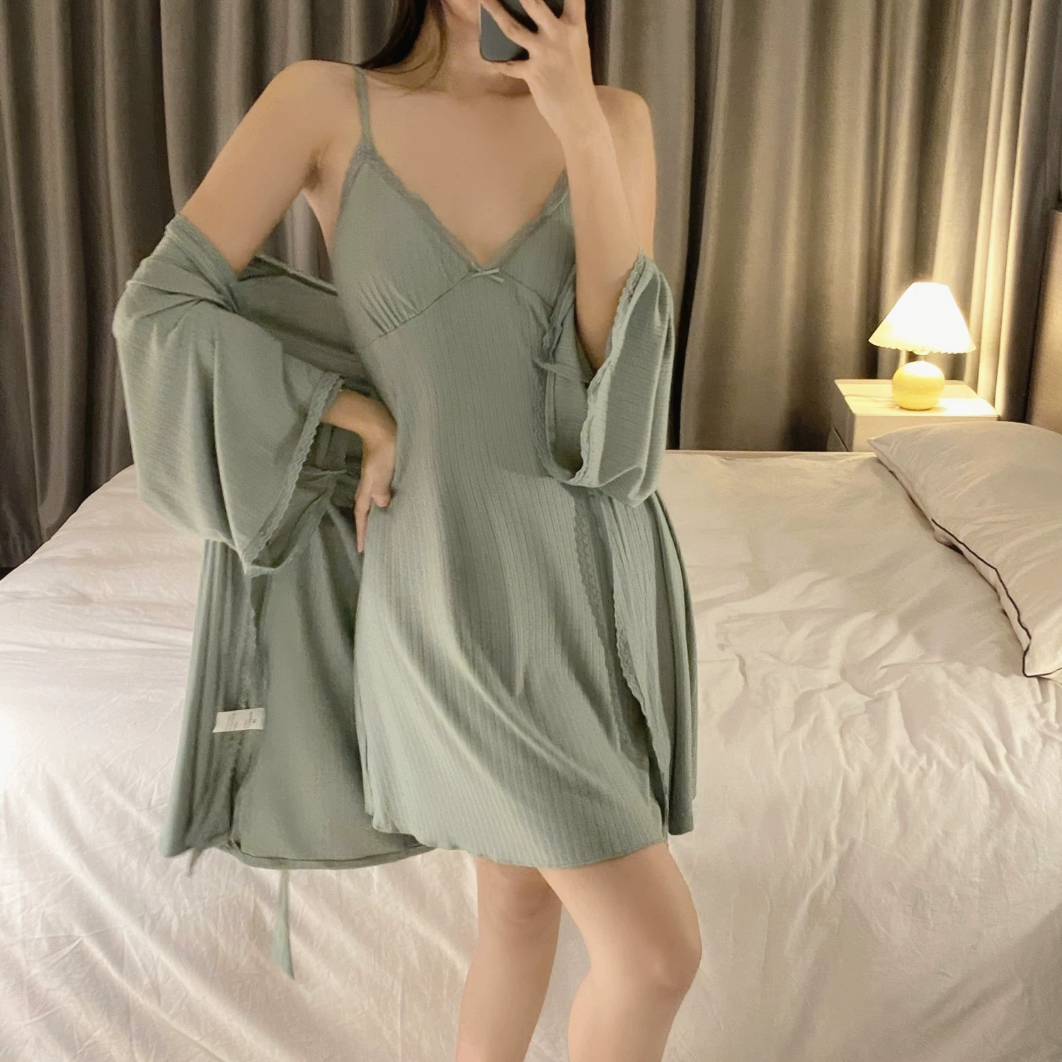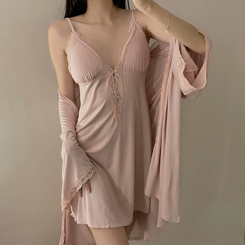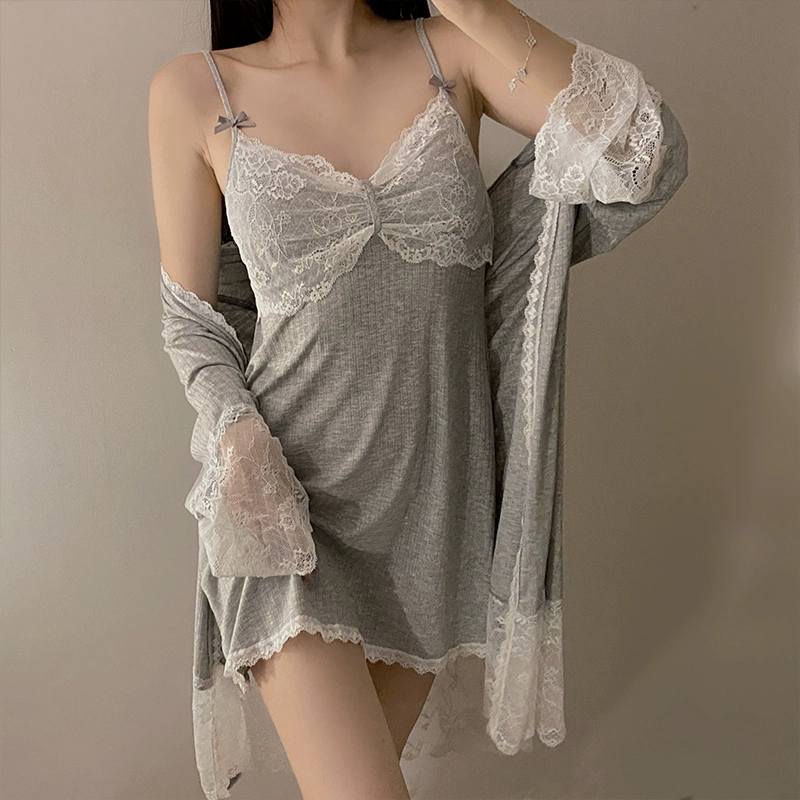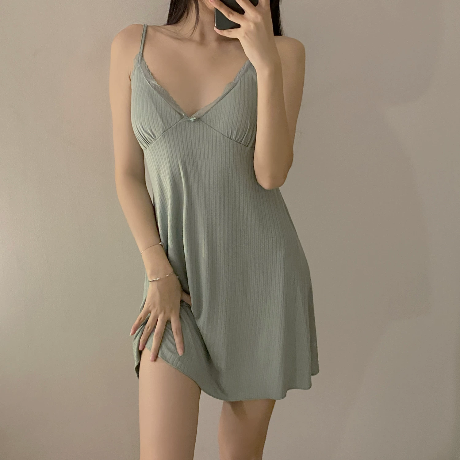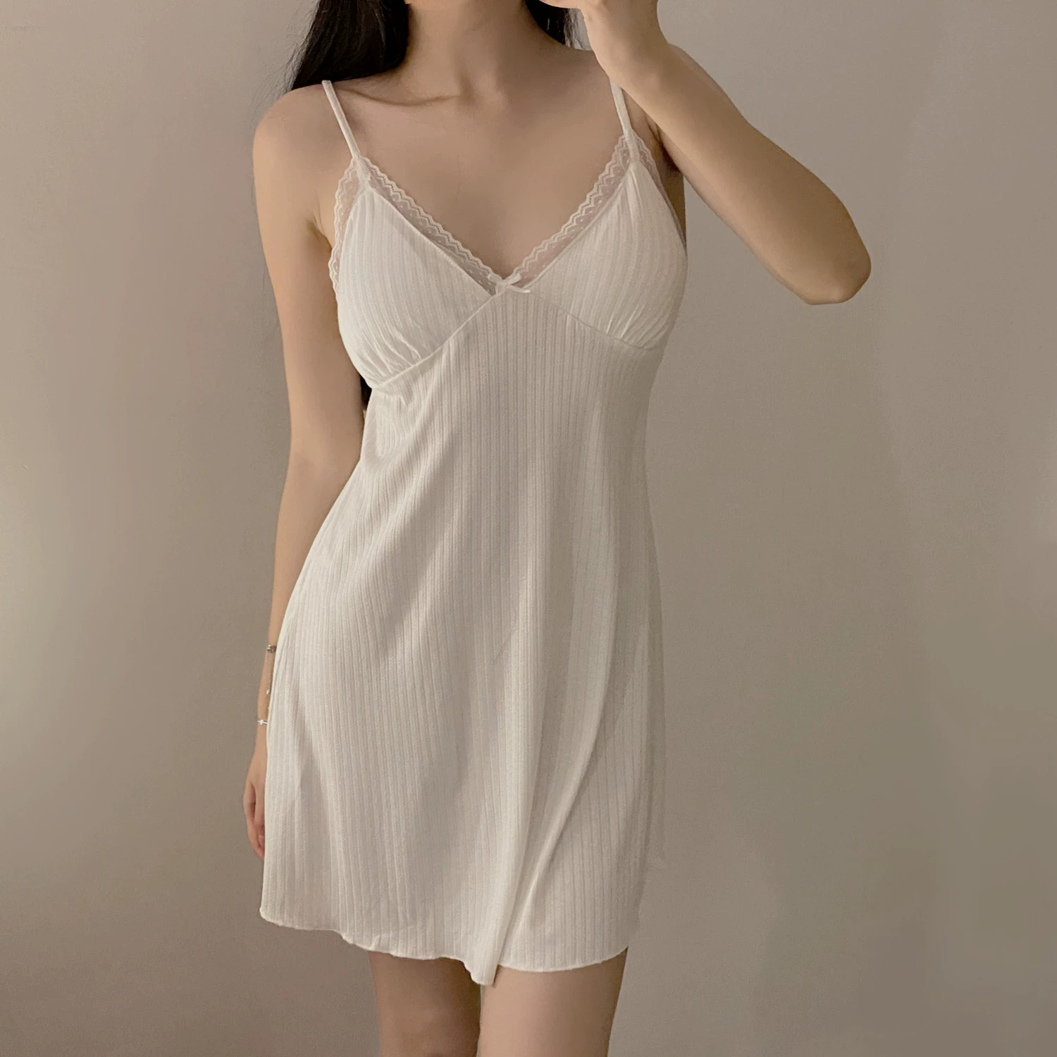 Pajamas for women Modal suspender nightgown for women summer nightgown lace sexy thin pure cotton Internet celebrity style home wear set