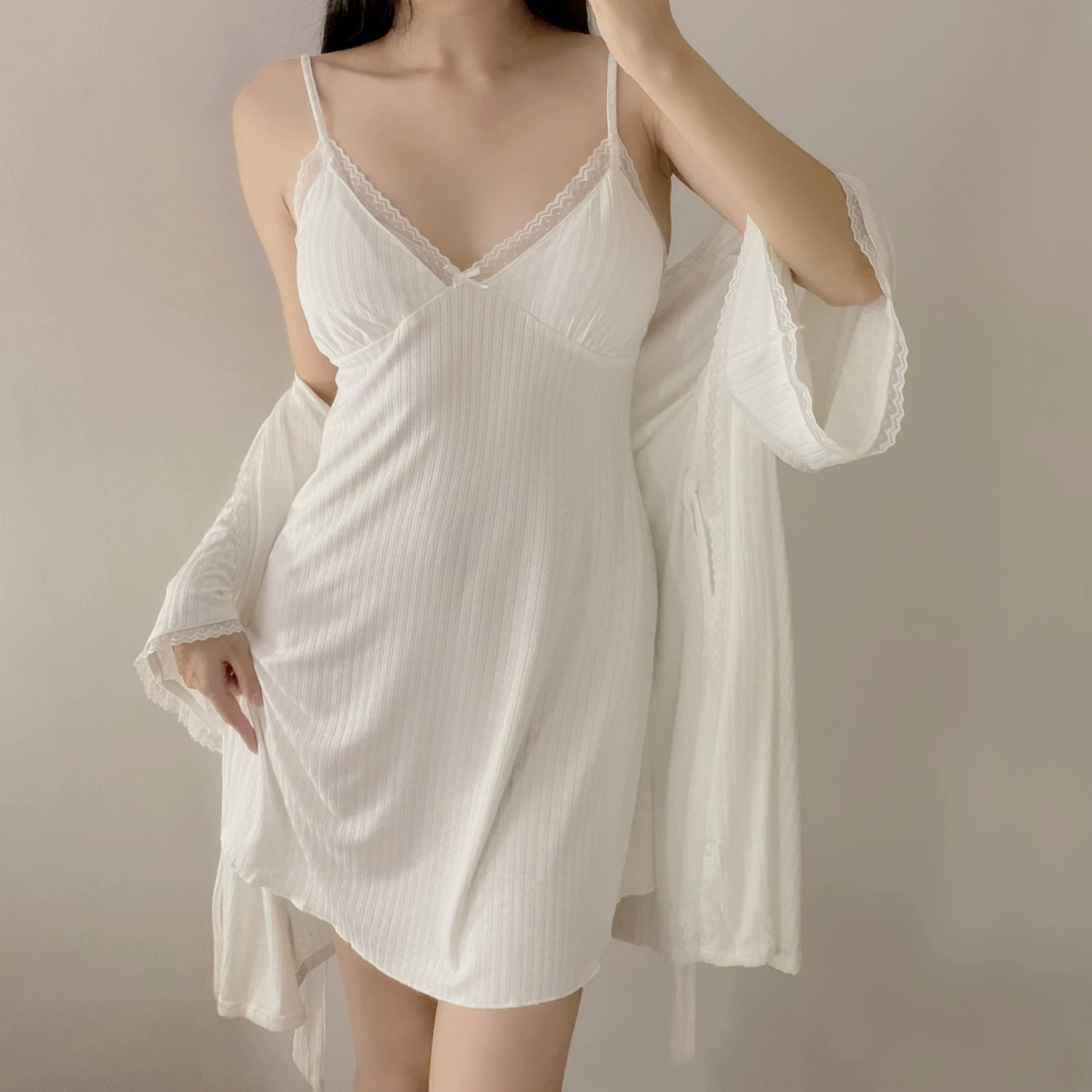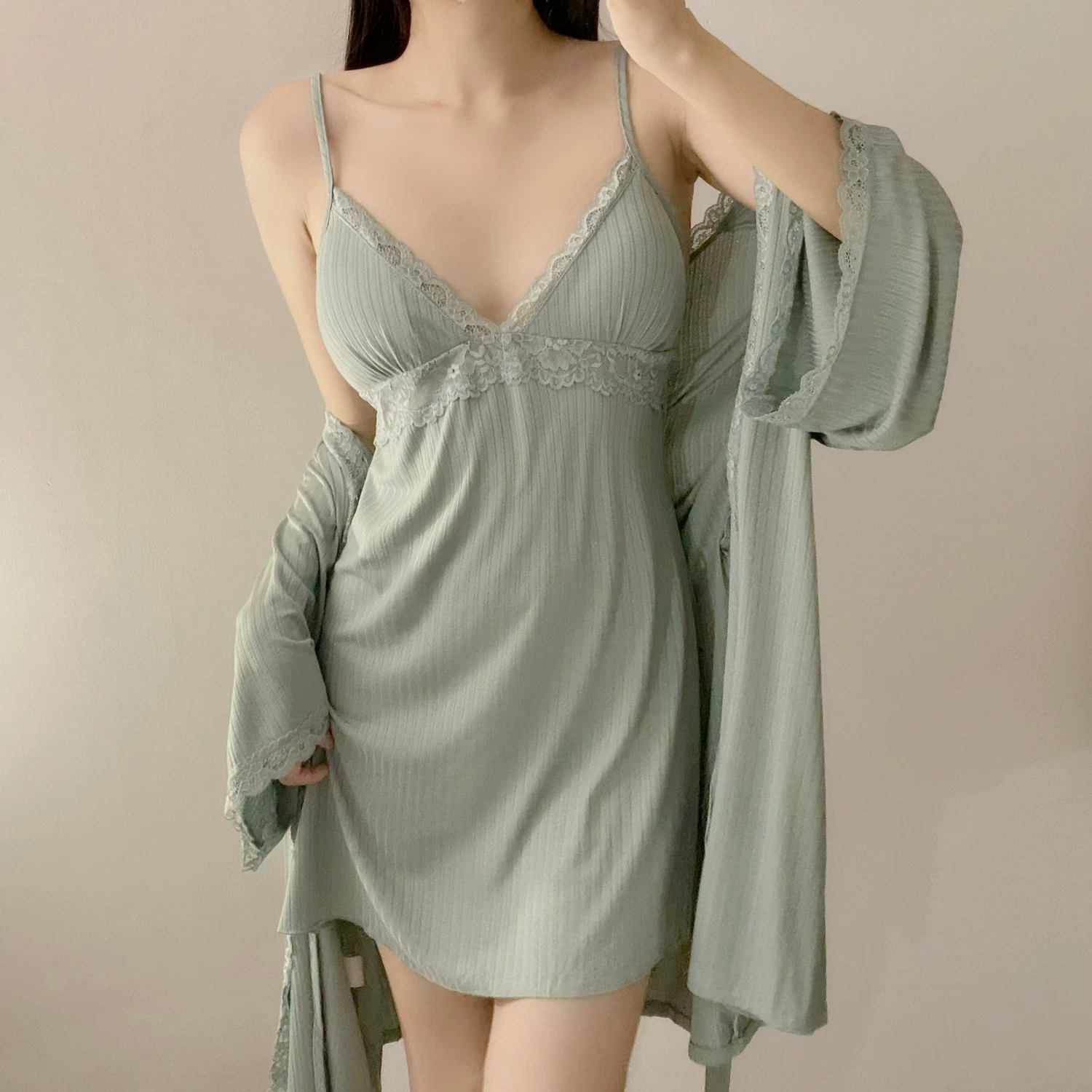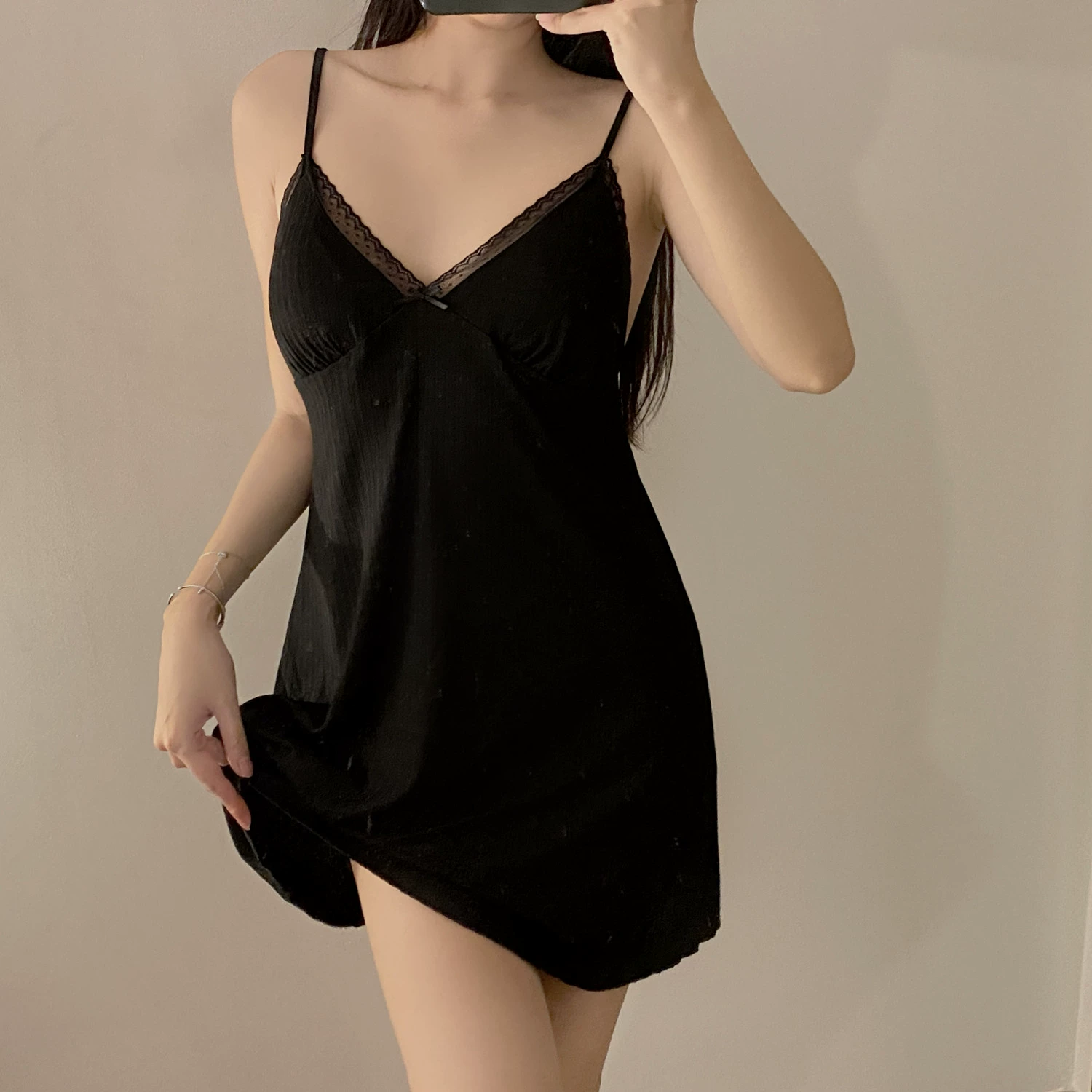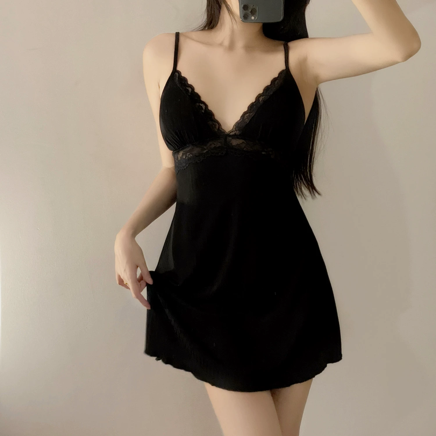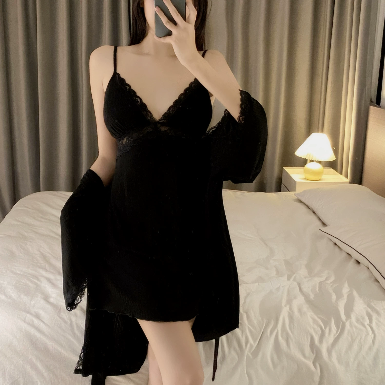 Pajamas for women Modal suspender nightgown for women summer nightgown lace sexy thin pure cotton Internet celebrity style home wear set