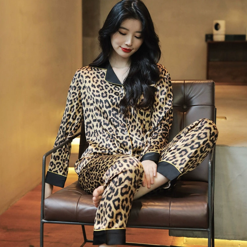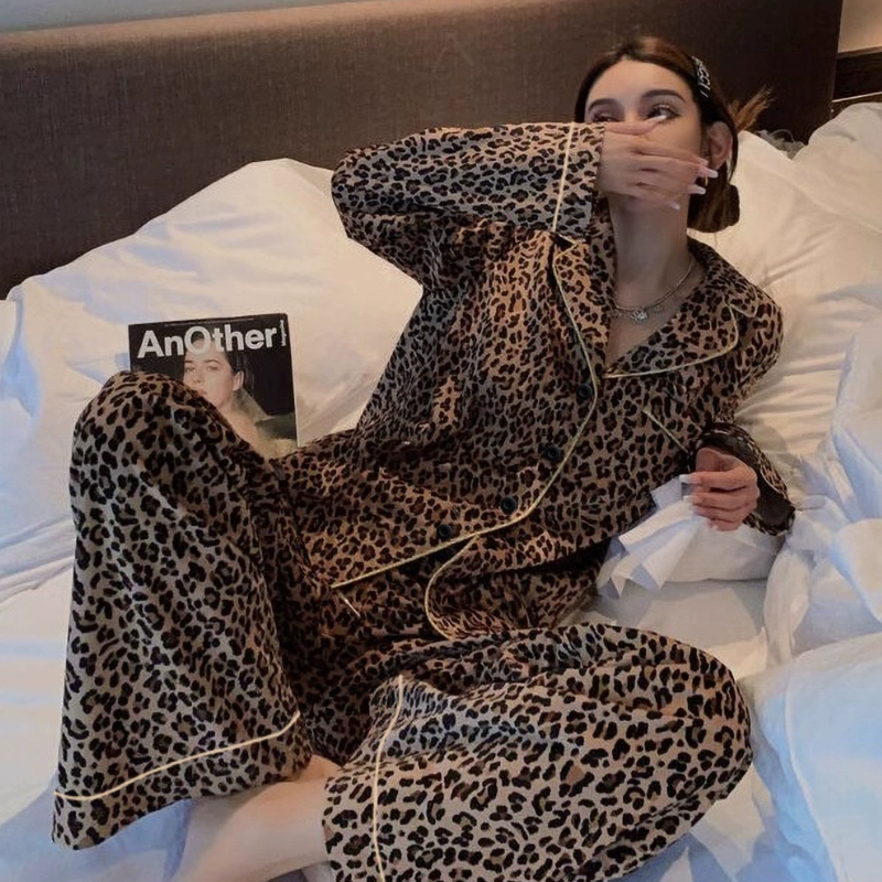 | nameOriginal | Pajamas for women spring and autumn 2024 new long-sleeved pure cotton large size summer leopard print autumn and winter home wear set |