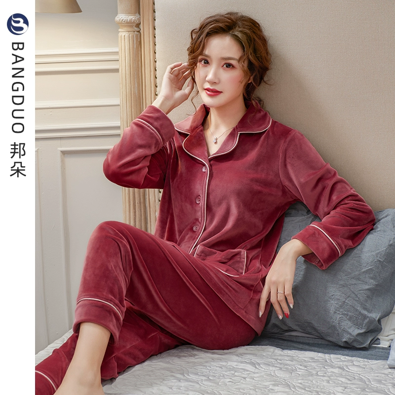 Pajamas for women spring and autumn coral velvet thickened plus velvet warm autumn and winter island velvet flannel winter home wear set