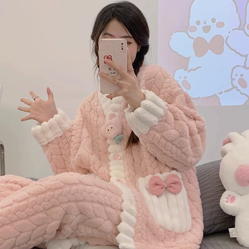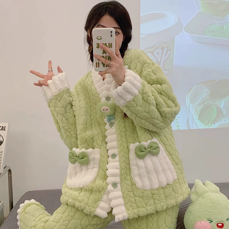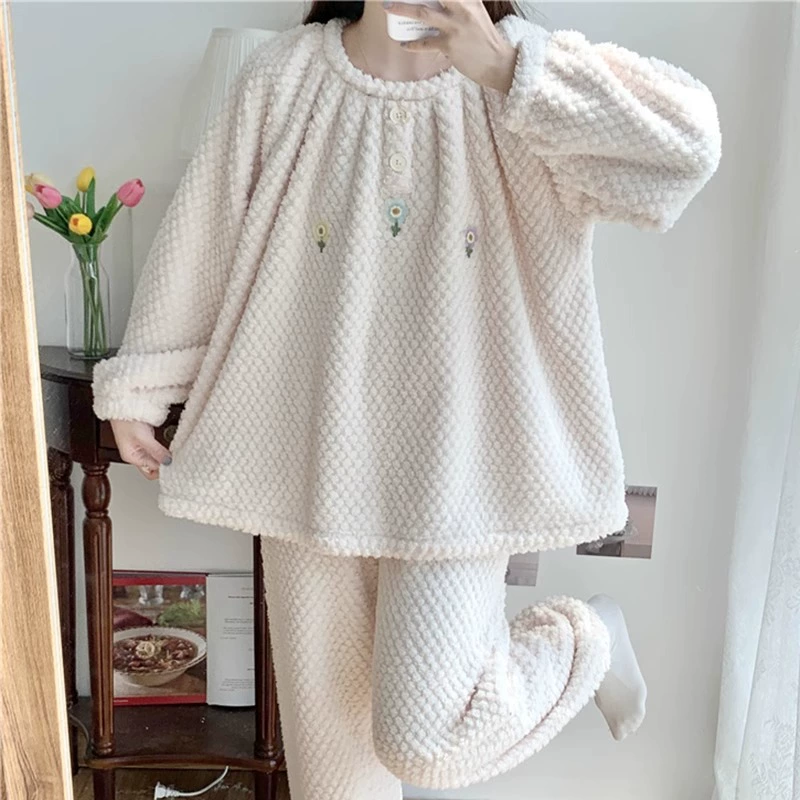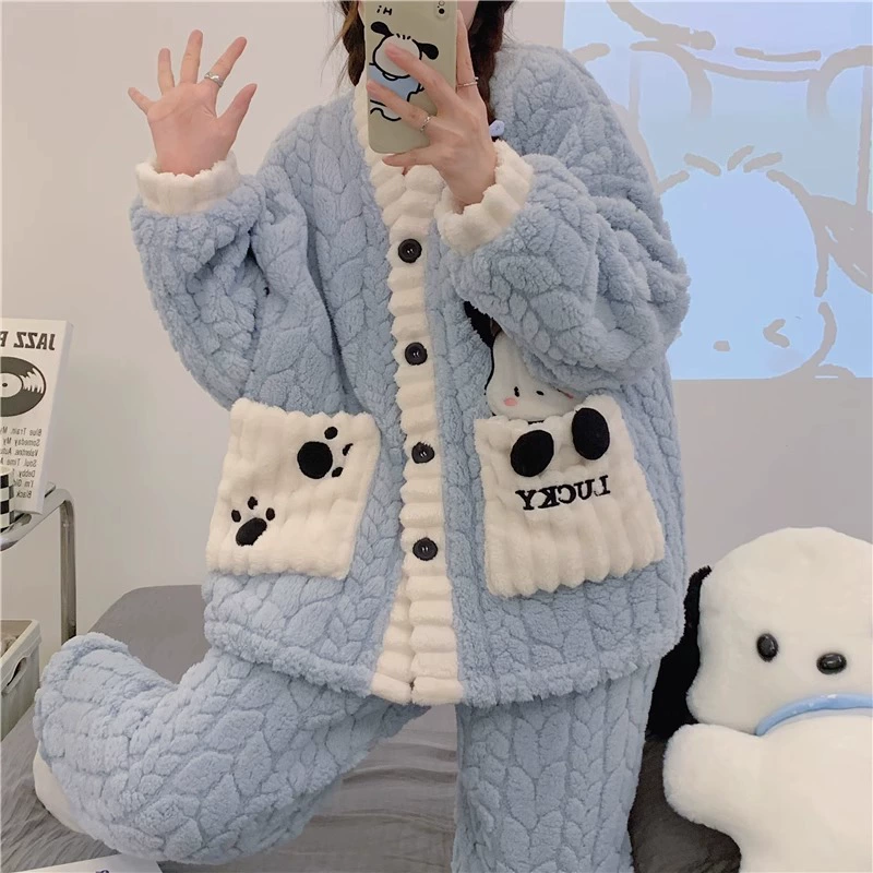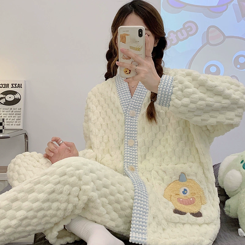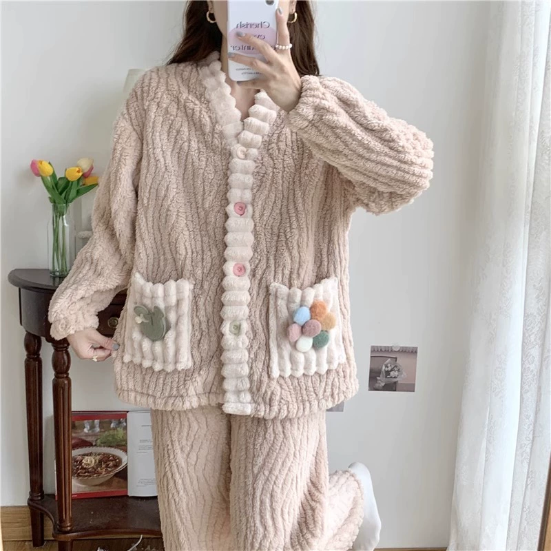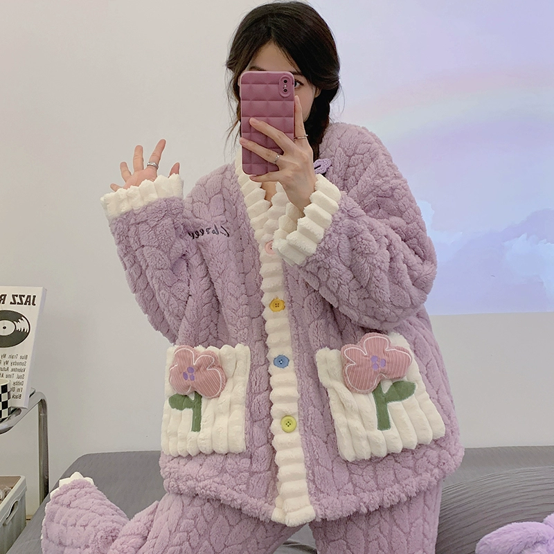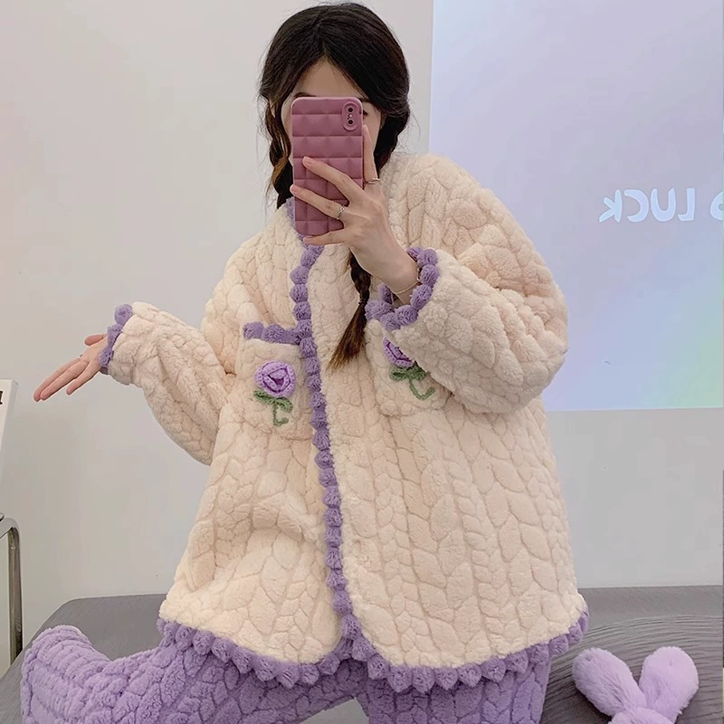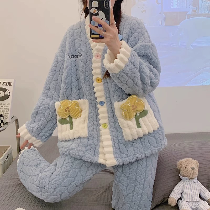 | nameOriginal | Pajamas for women spring, autumn and winter coral velvet thickened plus velvet to keep warm 2024 new home wear set sky flannel |