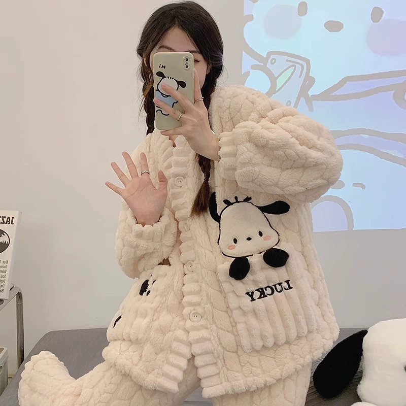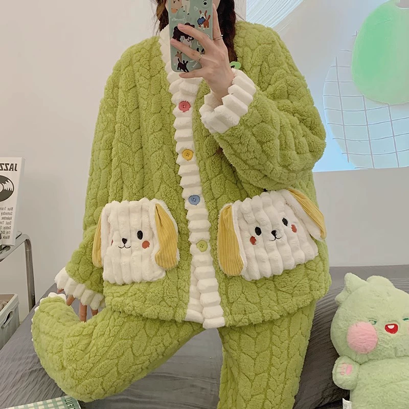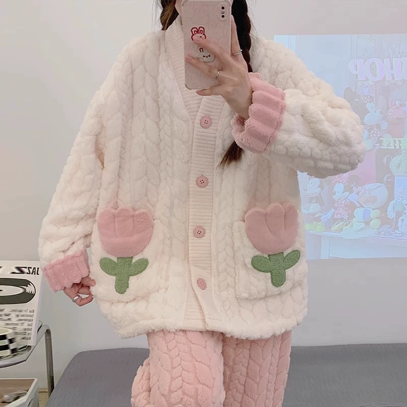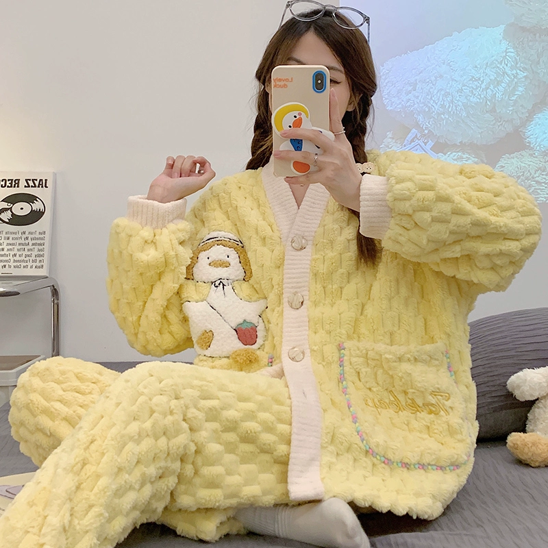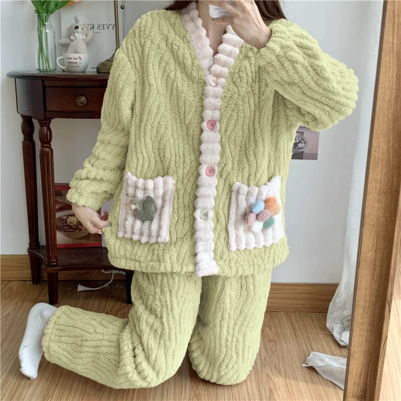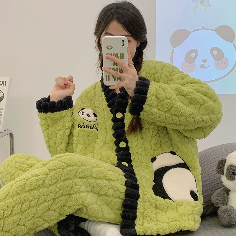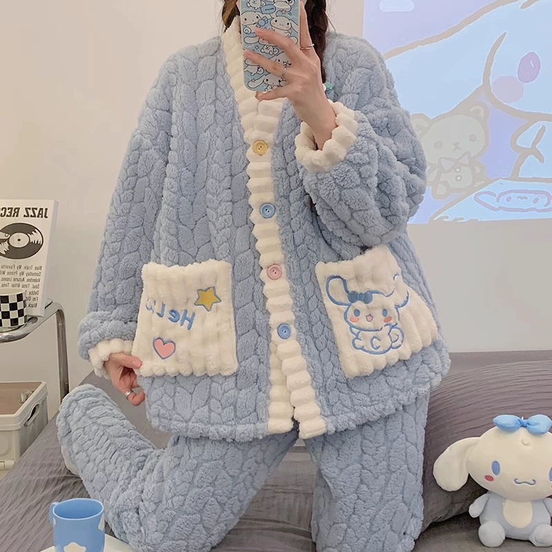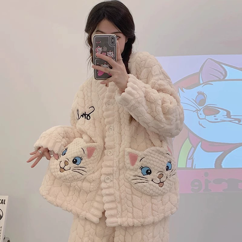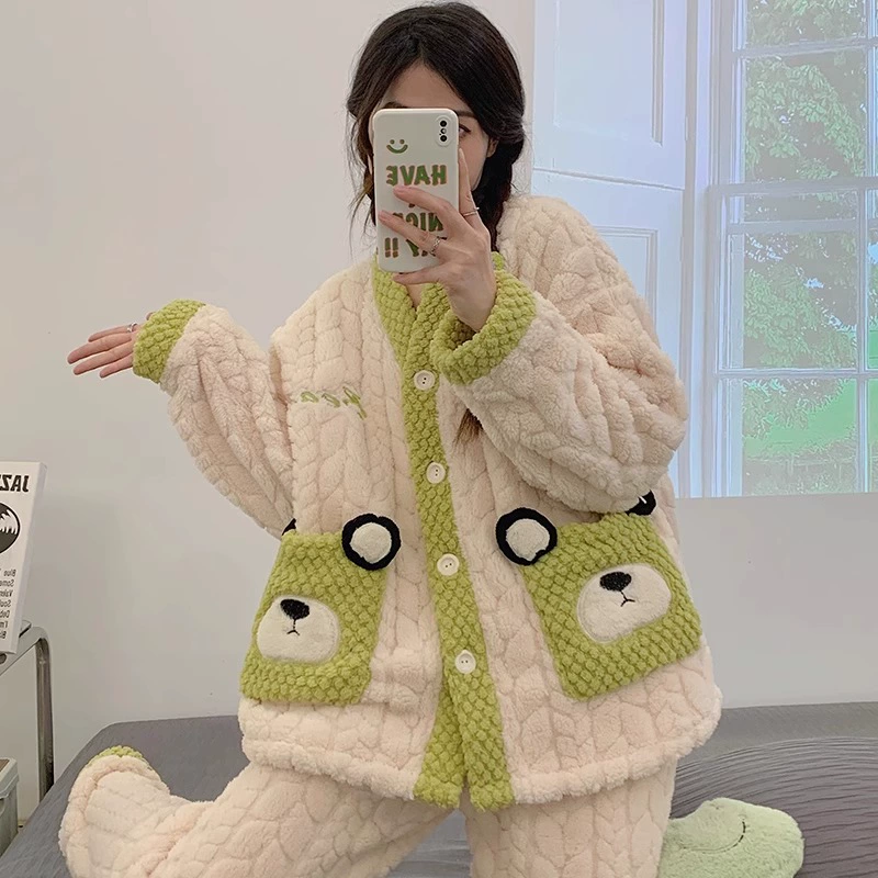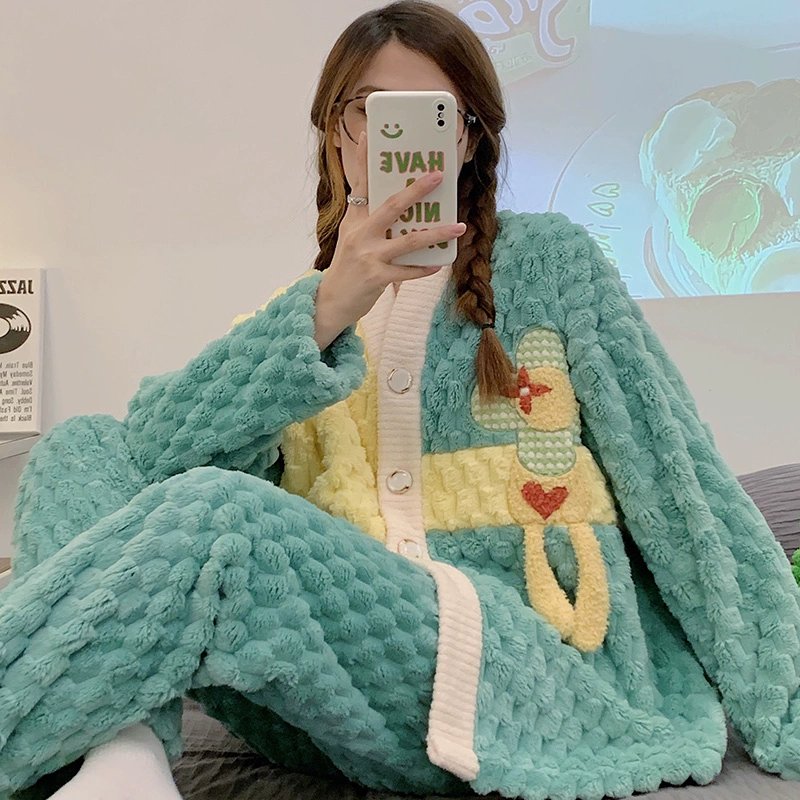 | nameOriginal | Pajamas for women spring, autumn and winter coral velvet thickened plus velvet to keep warm 2024 new home wear set sky flannel |