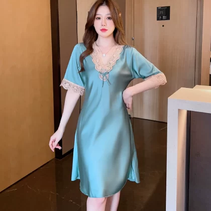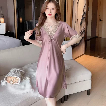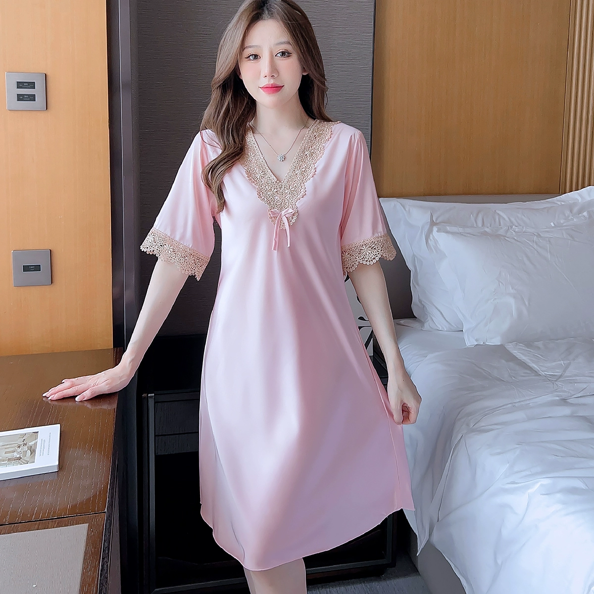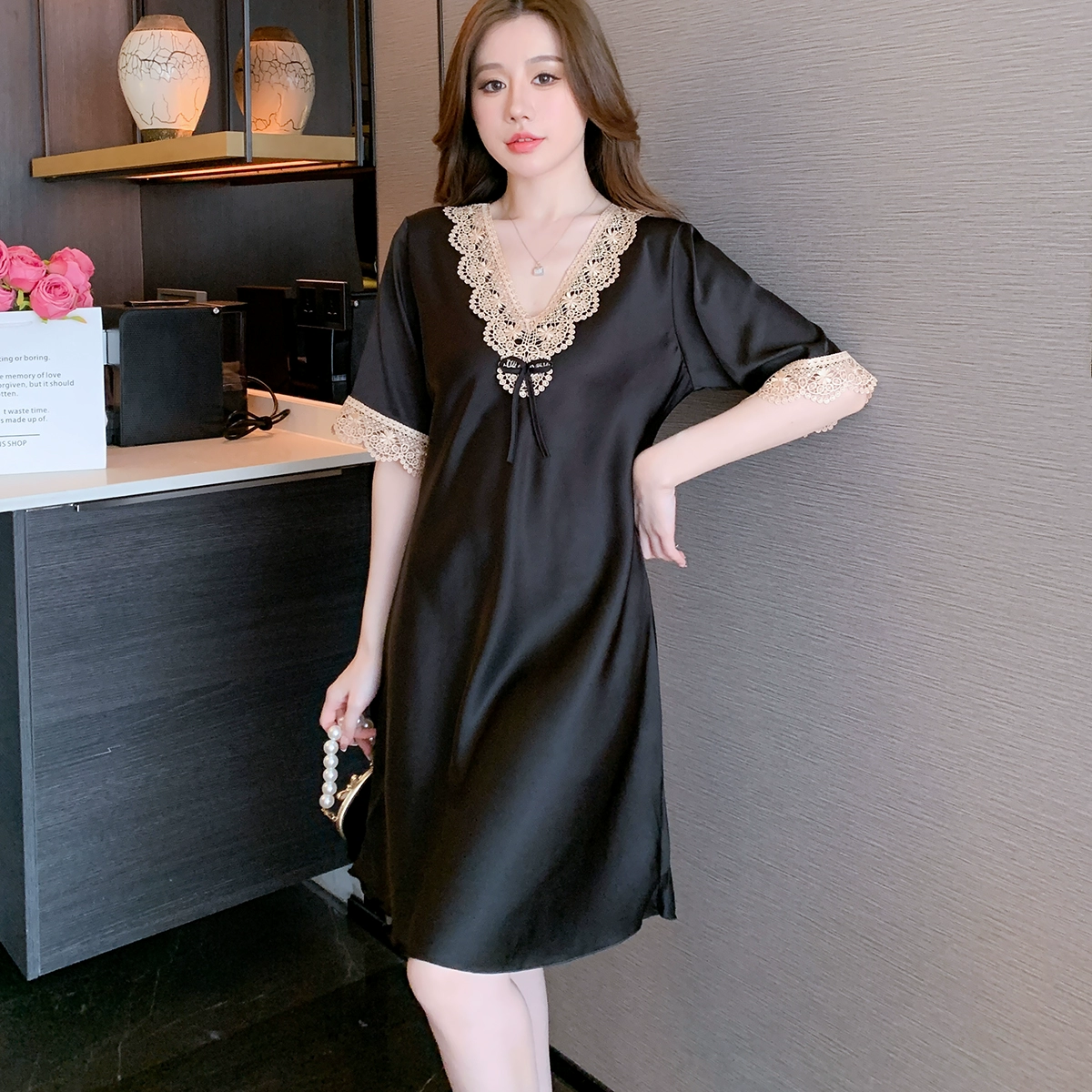 Pajamas ladies summer ice silk thin nightgown sexy loose short-sleeved summer silk internet celebrity high-end home clothing