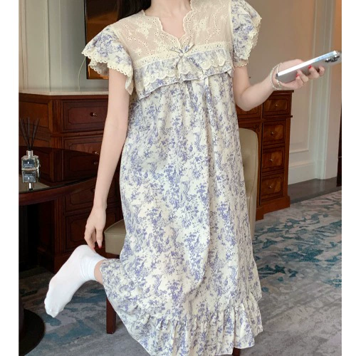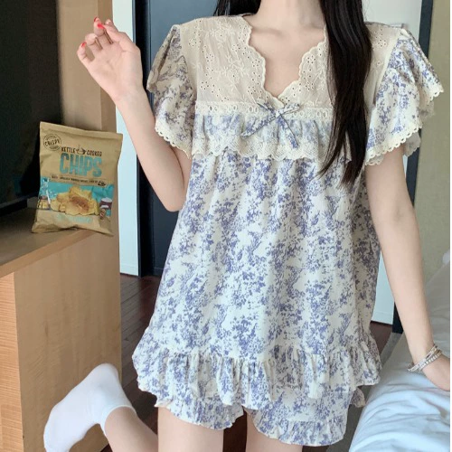 | nameOriginal | Pajamas for women summer short-sleeved shorts Korean style sweet lace style ink painting cotton home clothes two-piece suit |