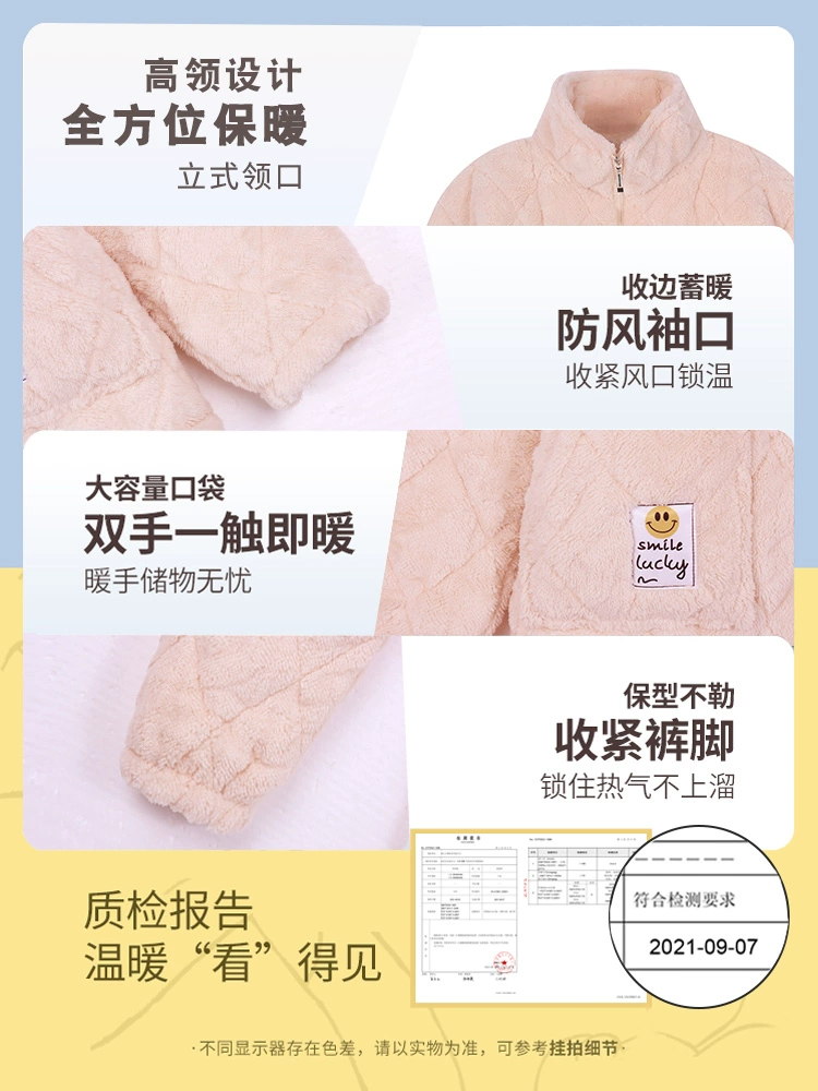| nameOriginal | Pajamas for women winter 2023 new coral velvet quilted three-layer plus velvet home clothes autumn and winter thickened super suit |
