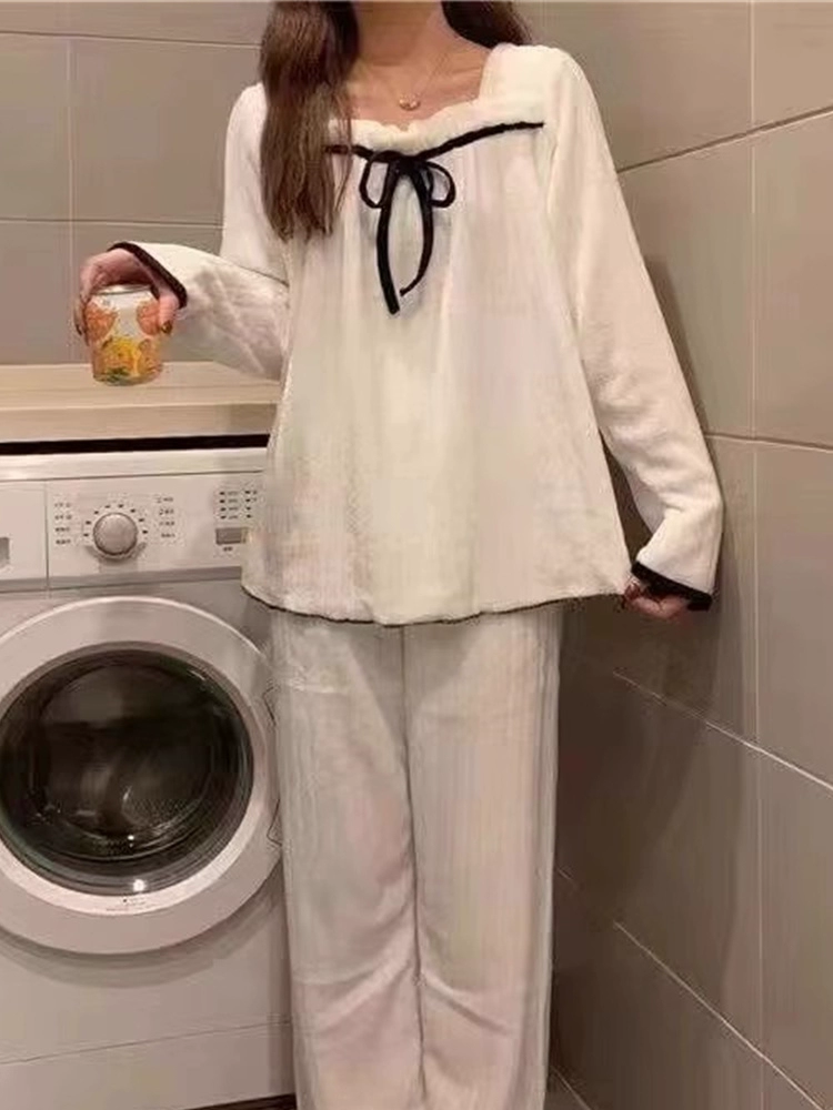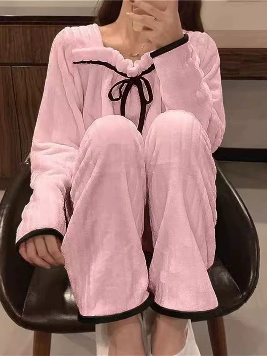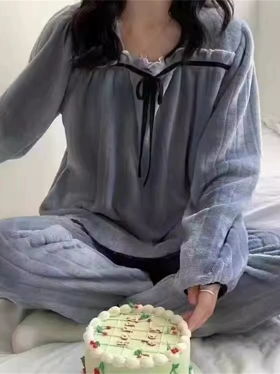 | nameOriginal | Pajamas for women winter bow flannel long-sleeved suit pure desire coral velvet ins small person plus velvet home clothes |
