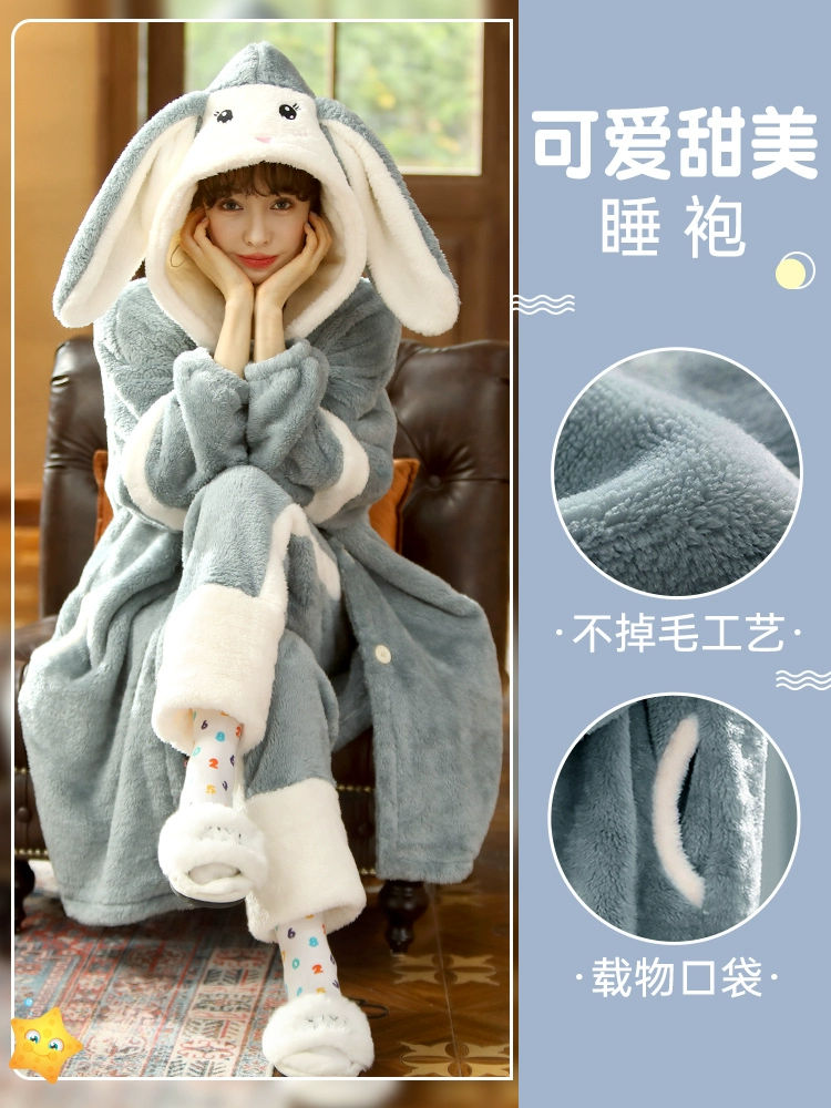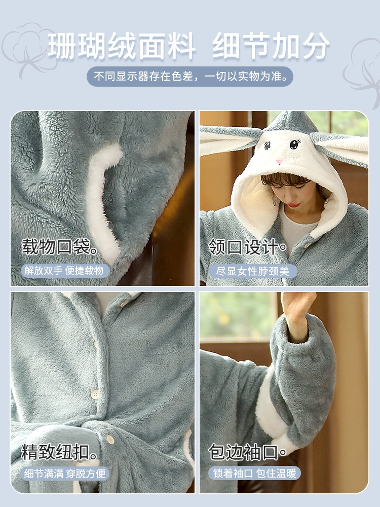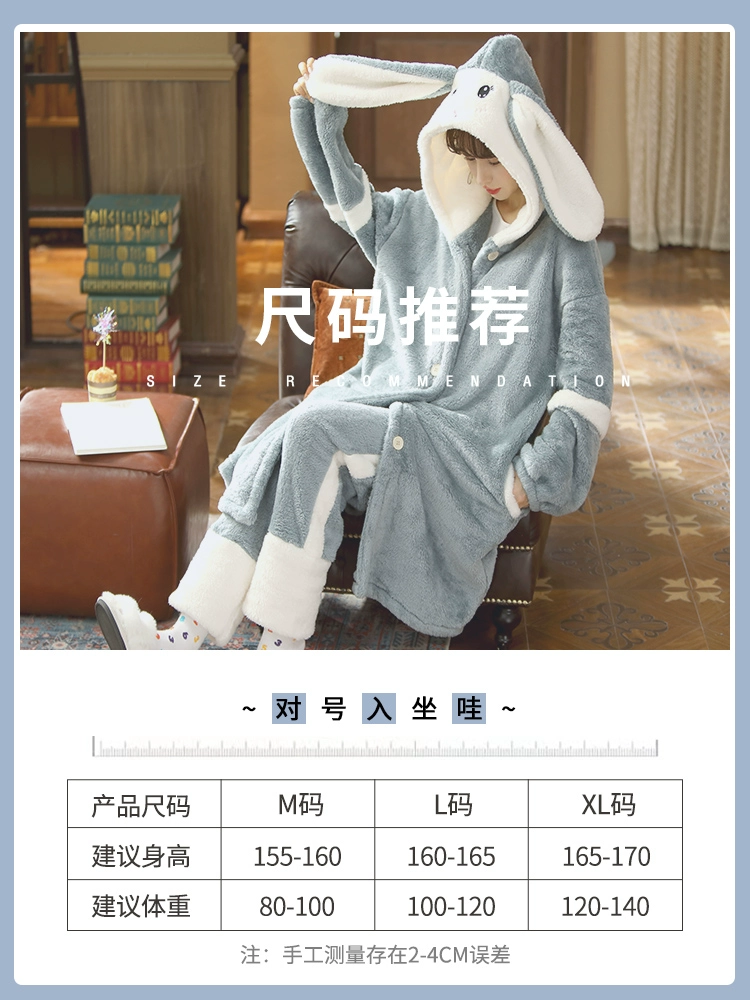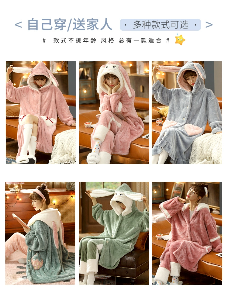 | nameOriginal | Pajamas for women winter coral velvet plus velvet thickened nightgown 2024 new autumn cute and sweet rabbit home clothes set |