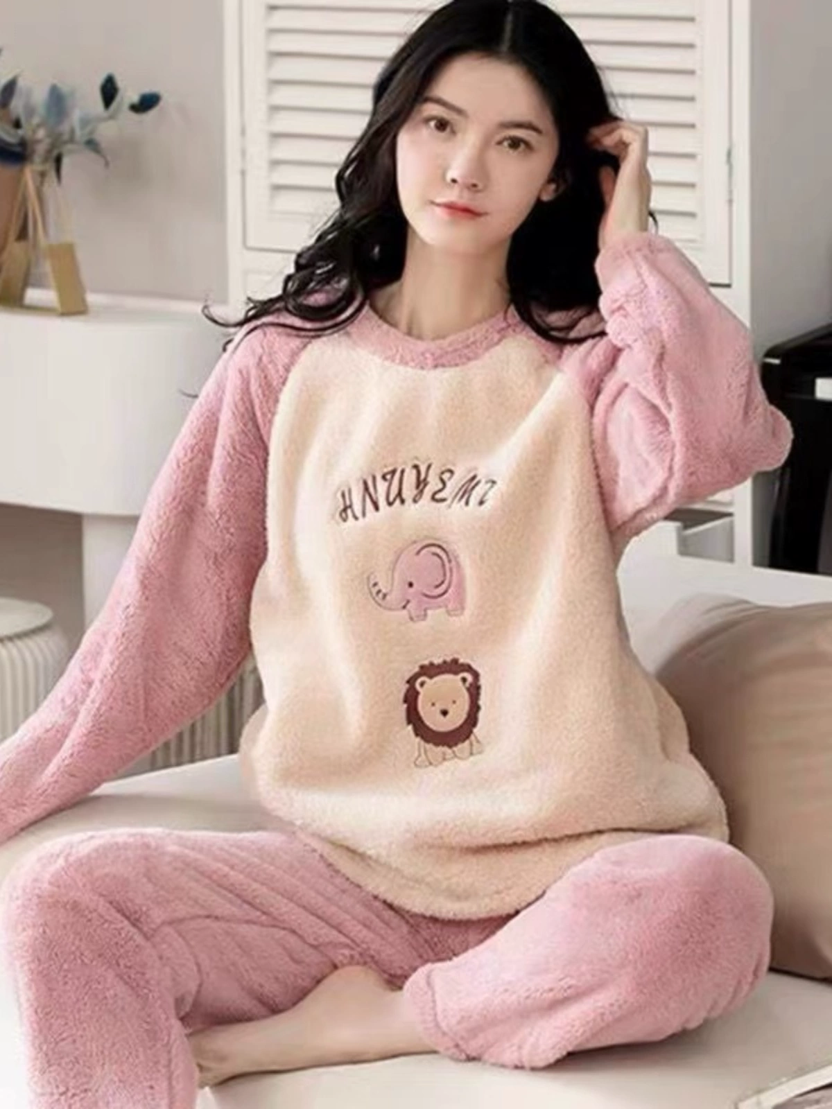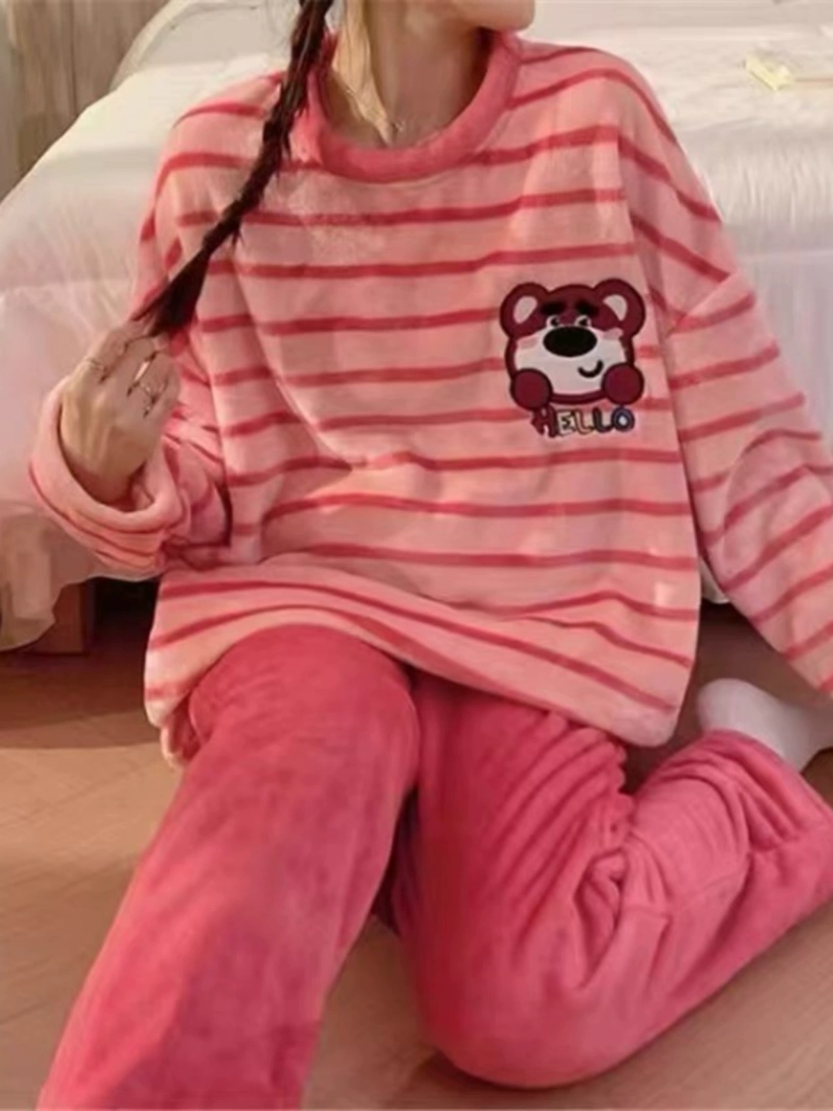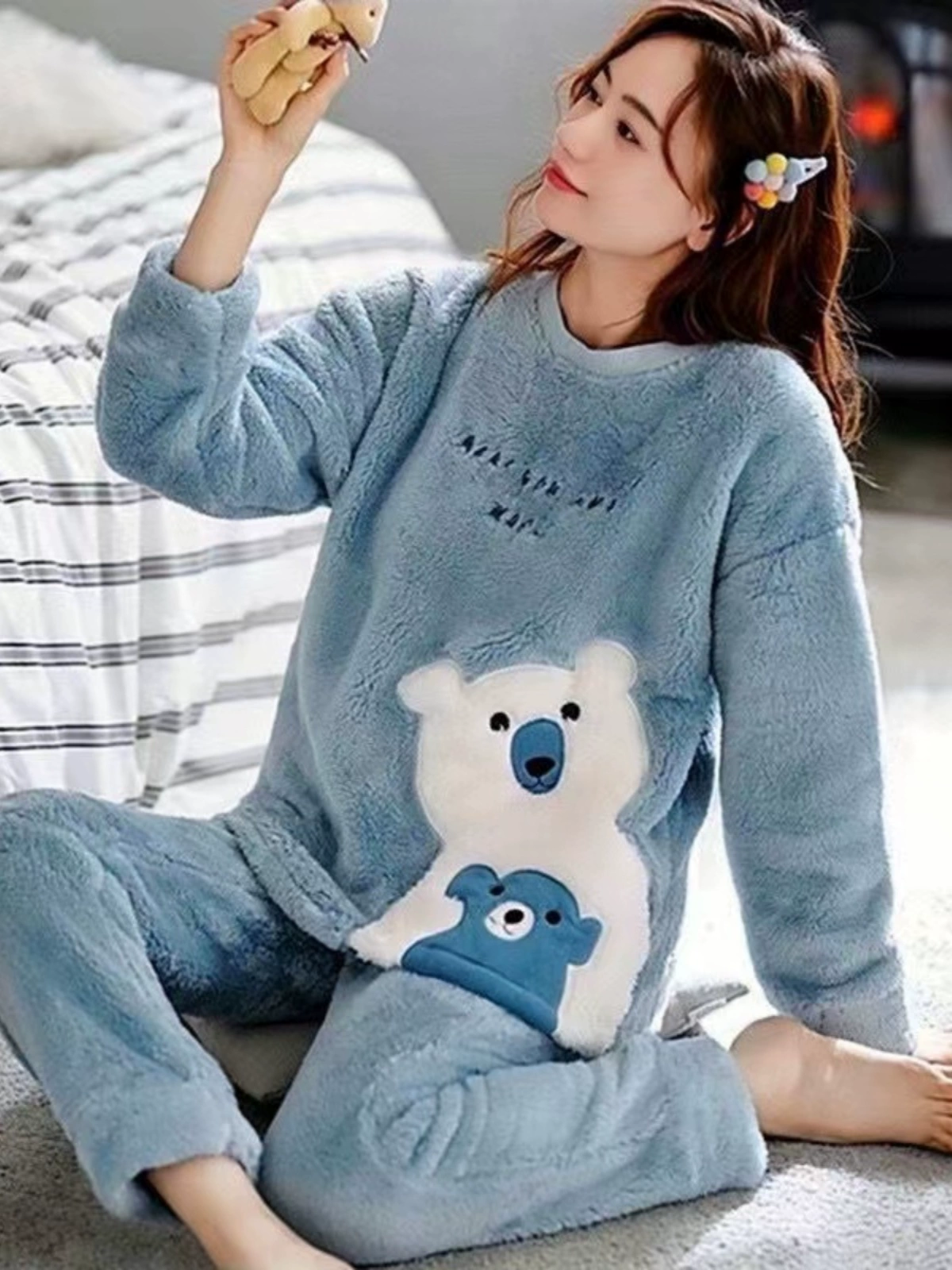 | nameOriginal | Pajamas for women winter coral velvet plus velvet thickening Internet celebrity style cartoon sweet bear flannel autumn and winter home clothes |