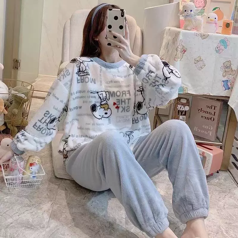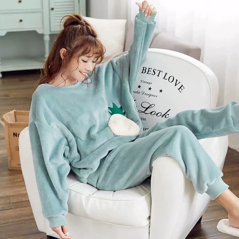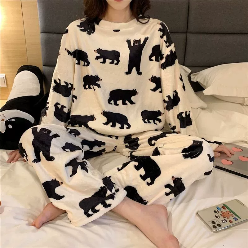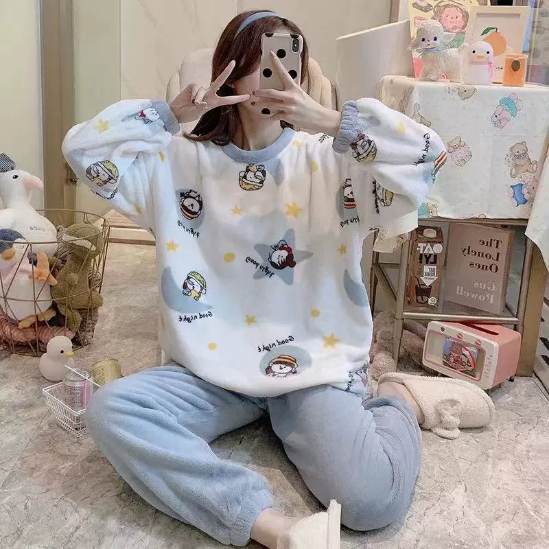 | nameOriginal | Pajamas for women winter flannel Korean style long-sleeved thickened velvet coral velvet cute autumn and winter home wear set for women |