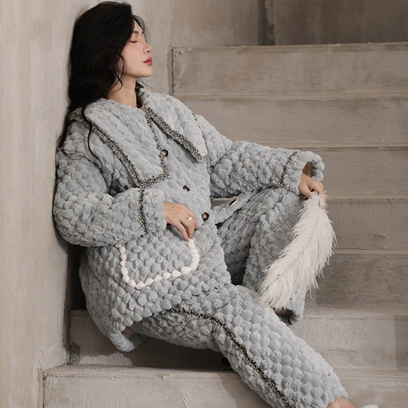 | nameOriginal | Pajamas for women winter three-layer quilted thickened coral velvet butterfly embroidery 2024 new plus velvet super thick home clothes |