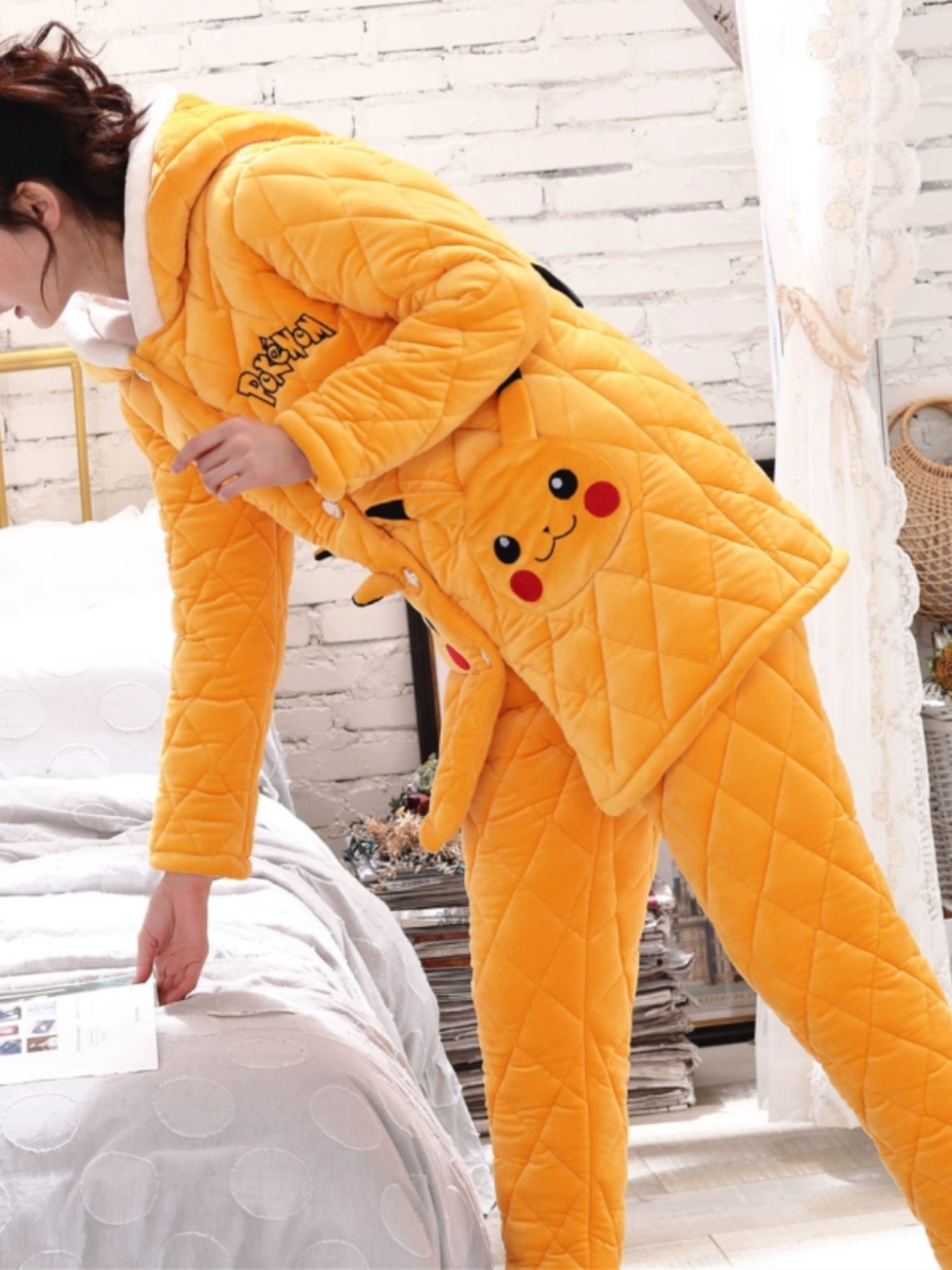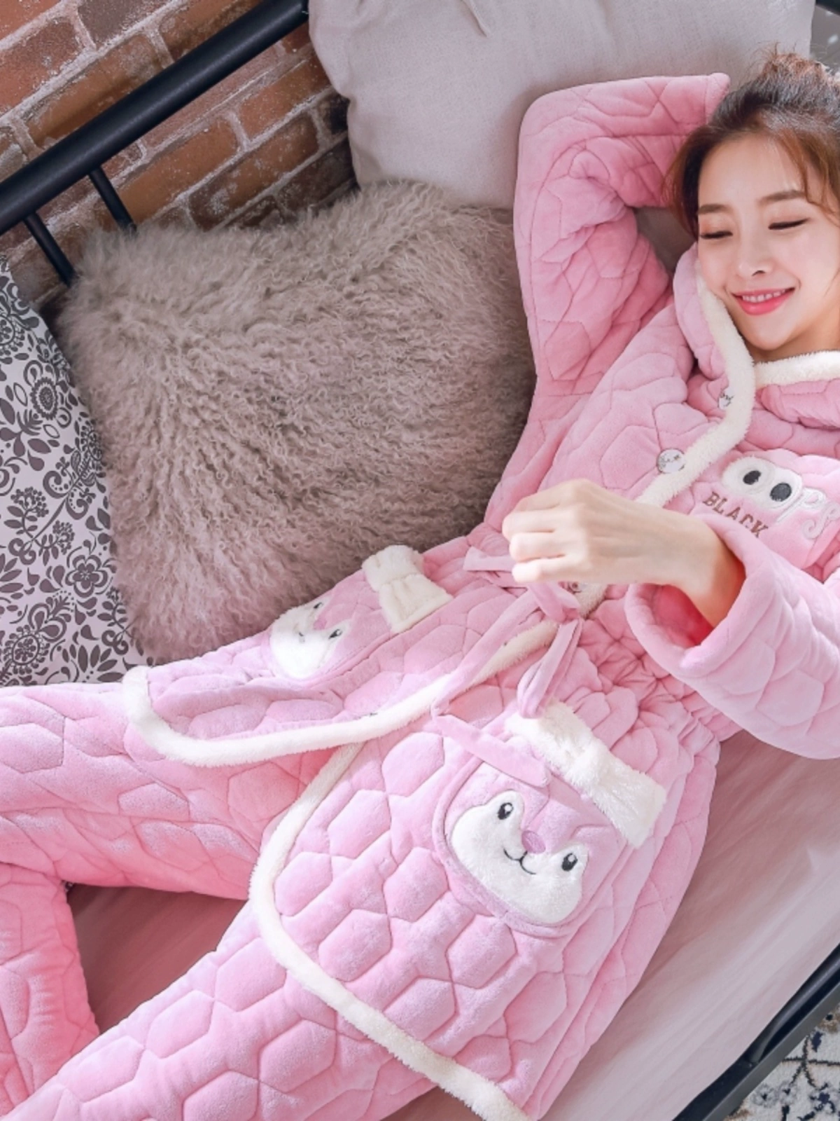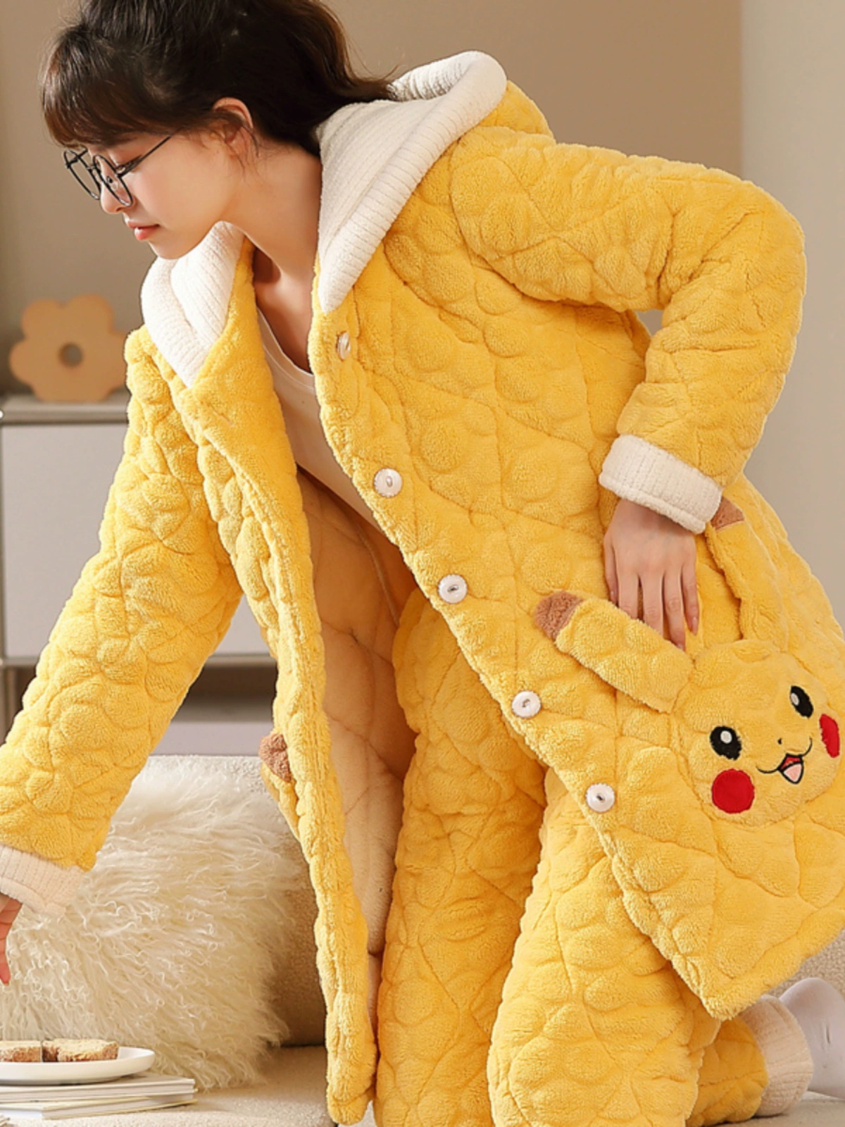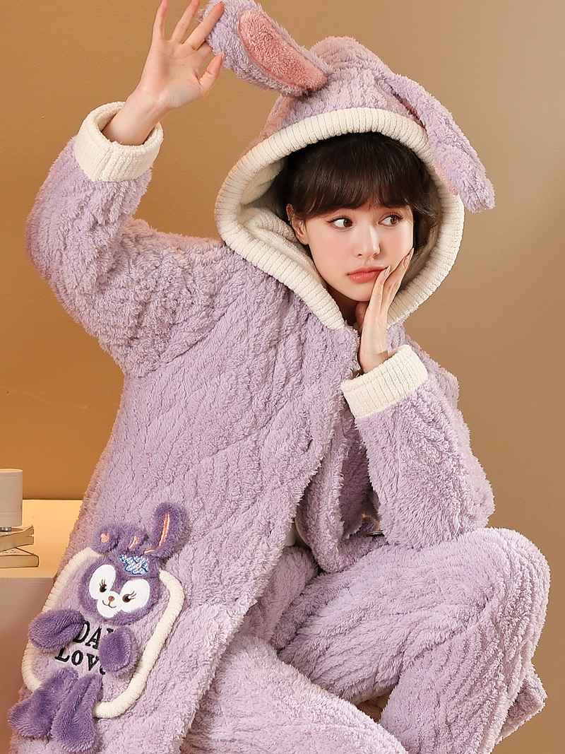 Pajamas for women, winter warm coral velvet quilted three-layer thickened plus velvet cotton jacket that can be worn outside, home clothes set