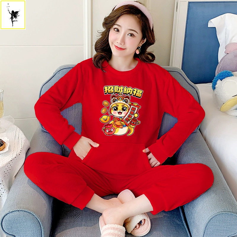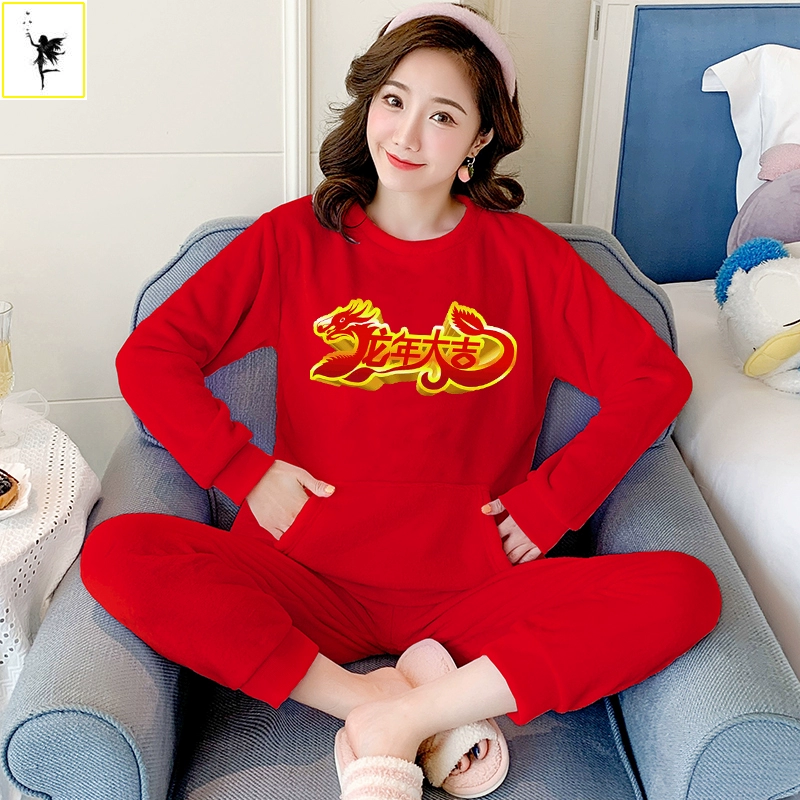 | nameOriginal | Pajamas for women's zodiac year big red coral velvet suit thickened plus velvet large size autumn and winter warm flannel home clothes |