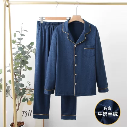 | nameOriginal | Pajamas men's winter thickened velvet long-sleeved trousers Modal loose large size outer wear autumn and winter home clothes set |