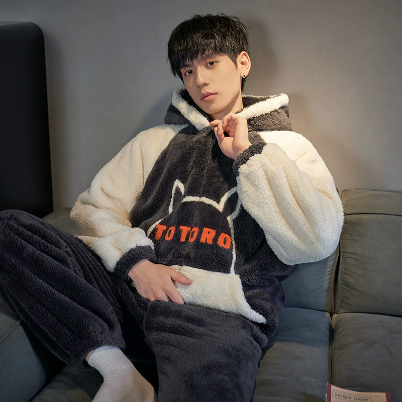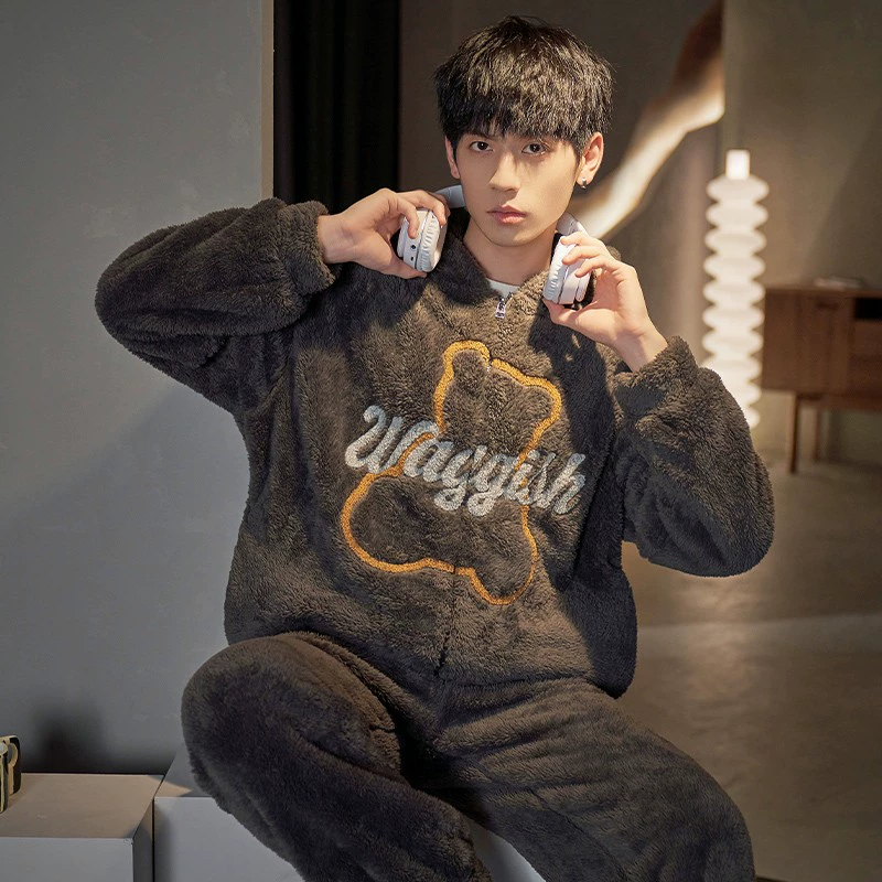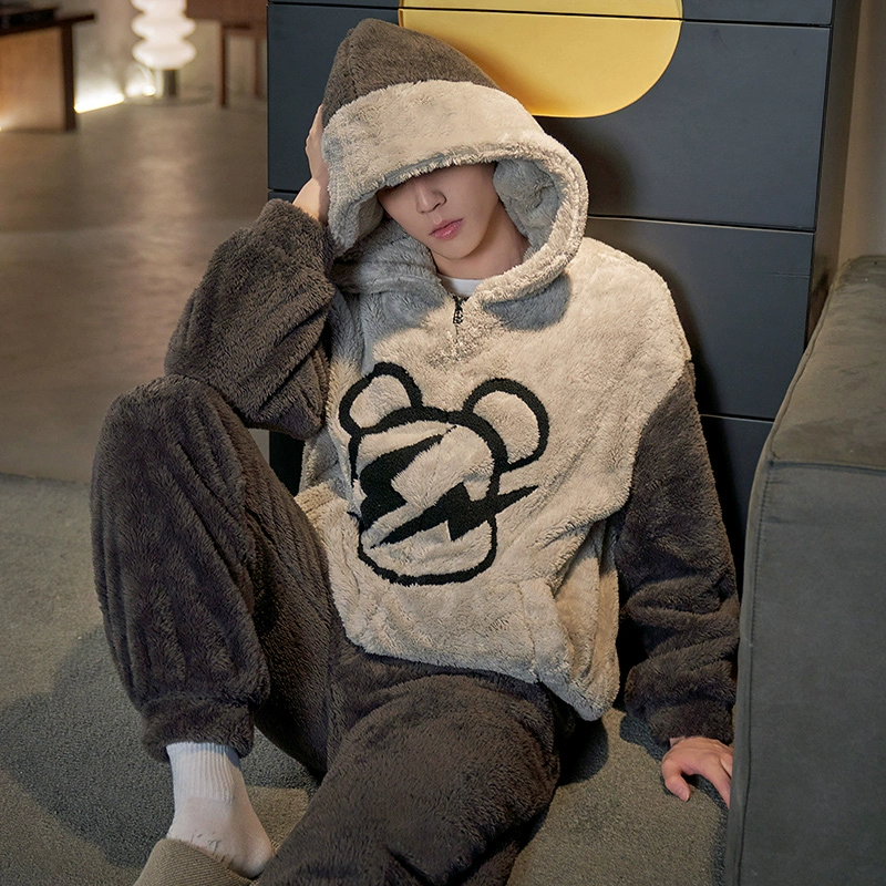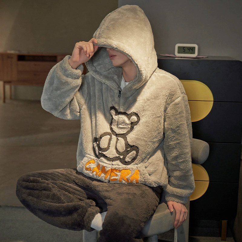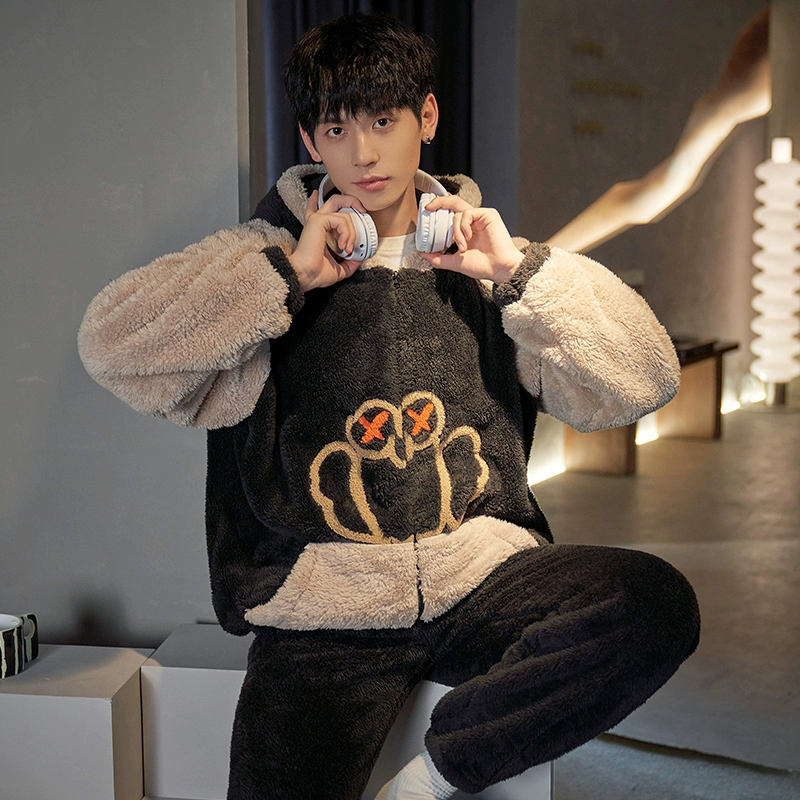| nameOriginal | Pajamas winter men's coral velvet thickened flannel men's home clothes spring autumn winter suit zipper hooded style |