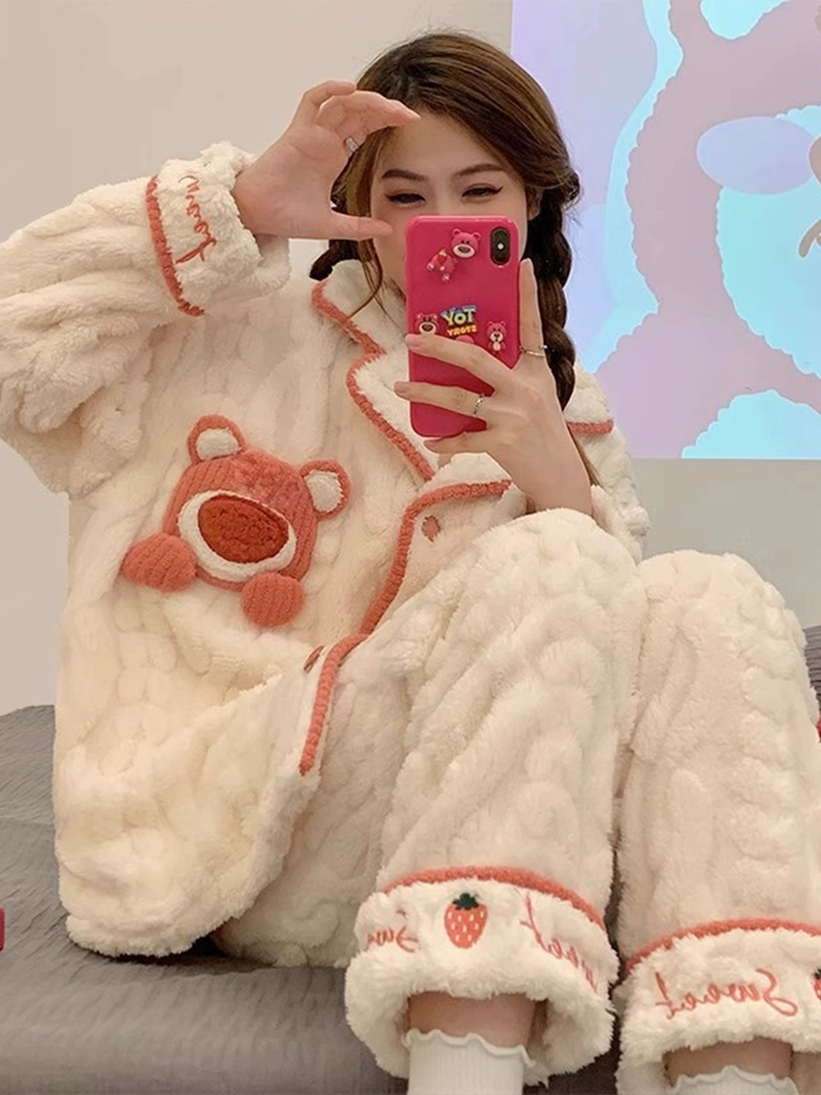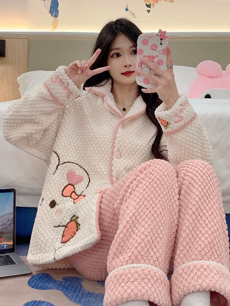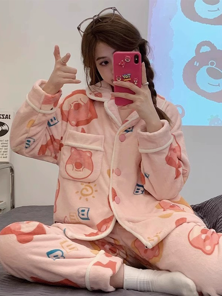 | nameOriginal | Pajamas, winter women's coral velvet long-sleeved plus velvet thickened cute piggy flannel Internet celebrity style home wear set |