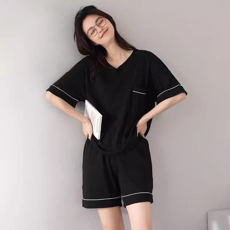 Pajamas with breast pads for women summer modal short-sleeved shorts thin 2024 new dark high-end home clothes