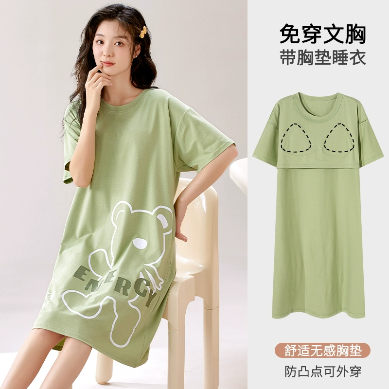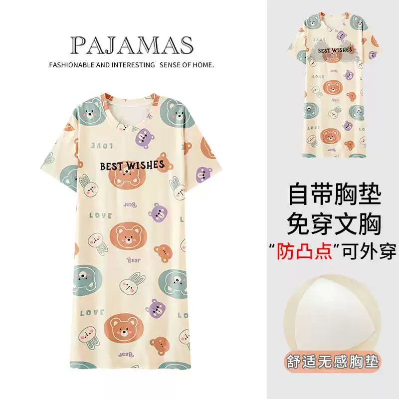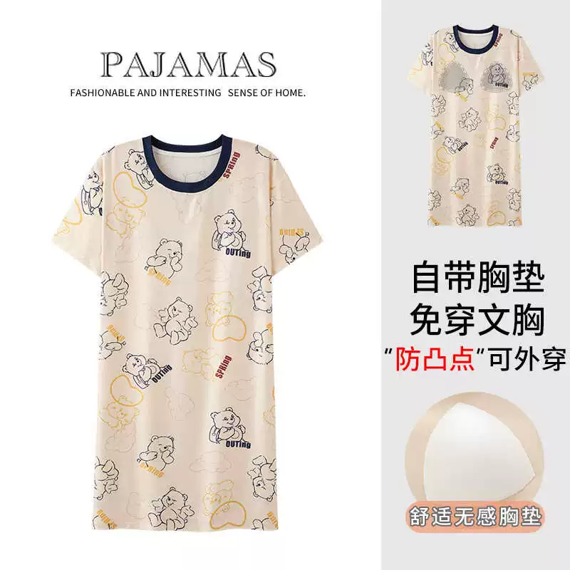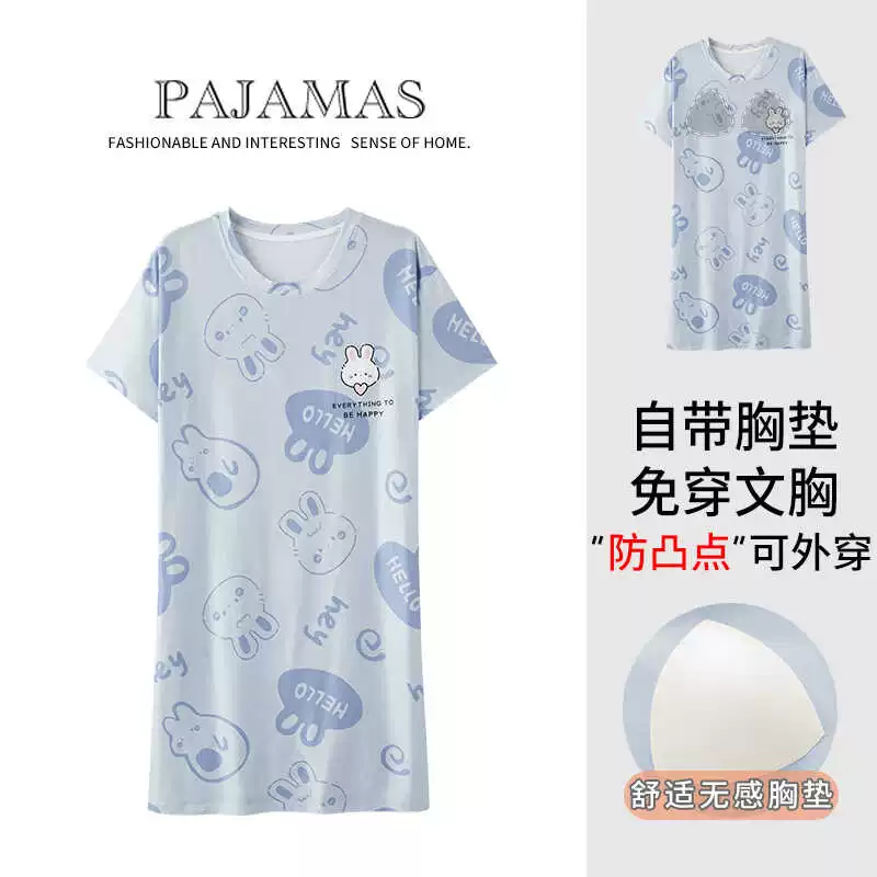 | nameOriginal | Pajamas with breast pads for women, summer sexy and cute pajamas for women, summer short-sleeved pure cotton thin models that can be worn outside as home clothes |