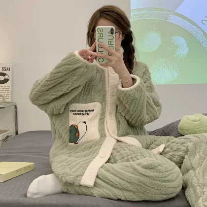 | nameOriginal | Pajamas women's autumn and winter home clothes plus velvet and thickened princess style warm coral velvet flannel winter suit |