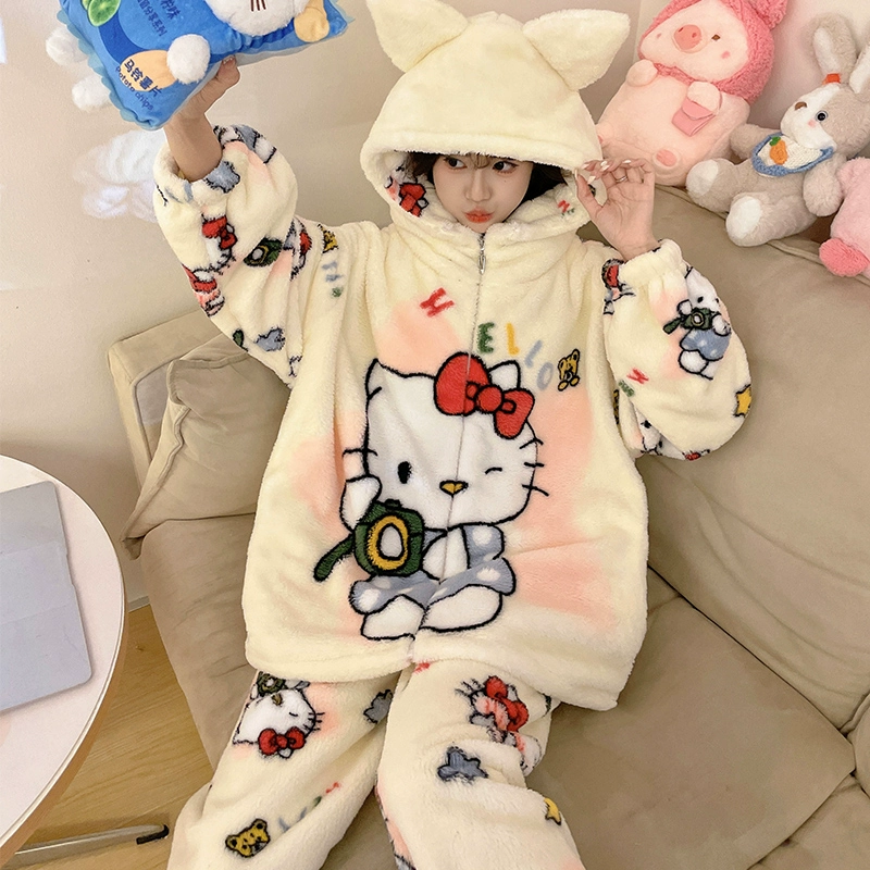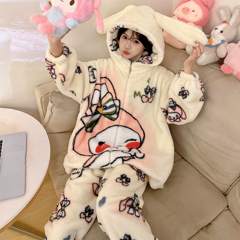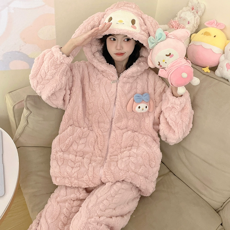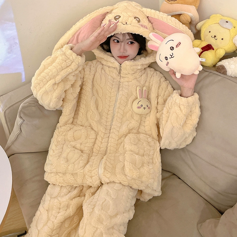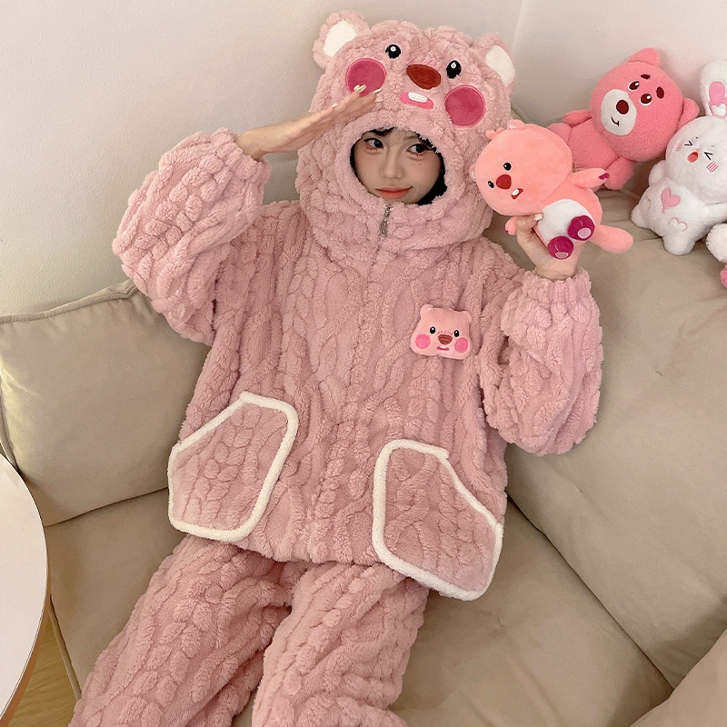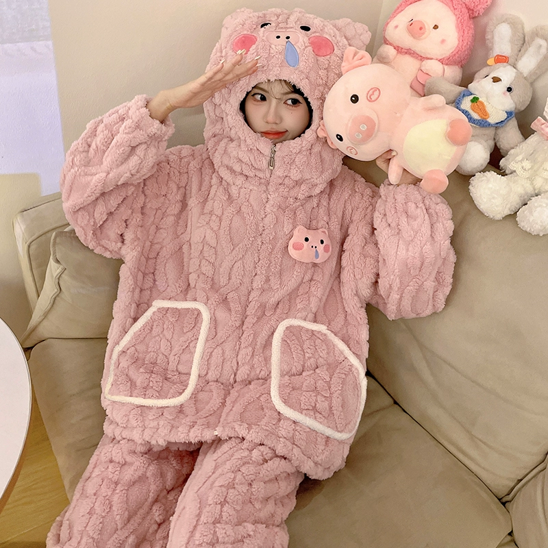 Pajamas women's coral velvet autumn and winter 2024 new pumpkin hooded thickened velvet winter flannel home clothes