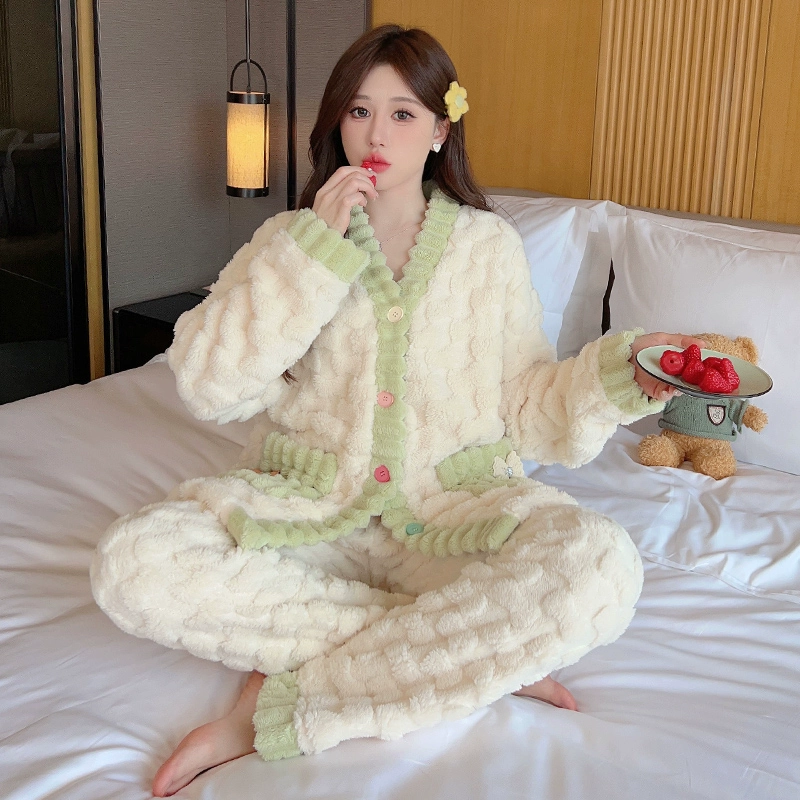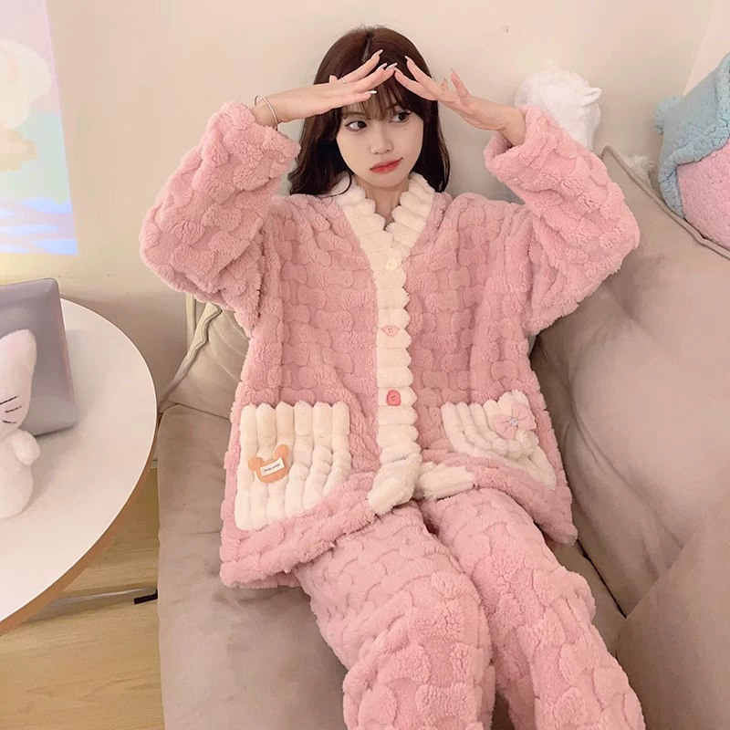 Pajamas women's coral velvet thickened velvet winter Internet celebrity style winter 2023 new flannel home wear set
