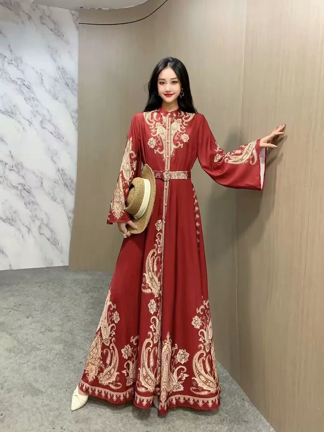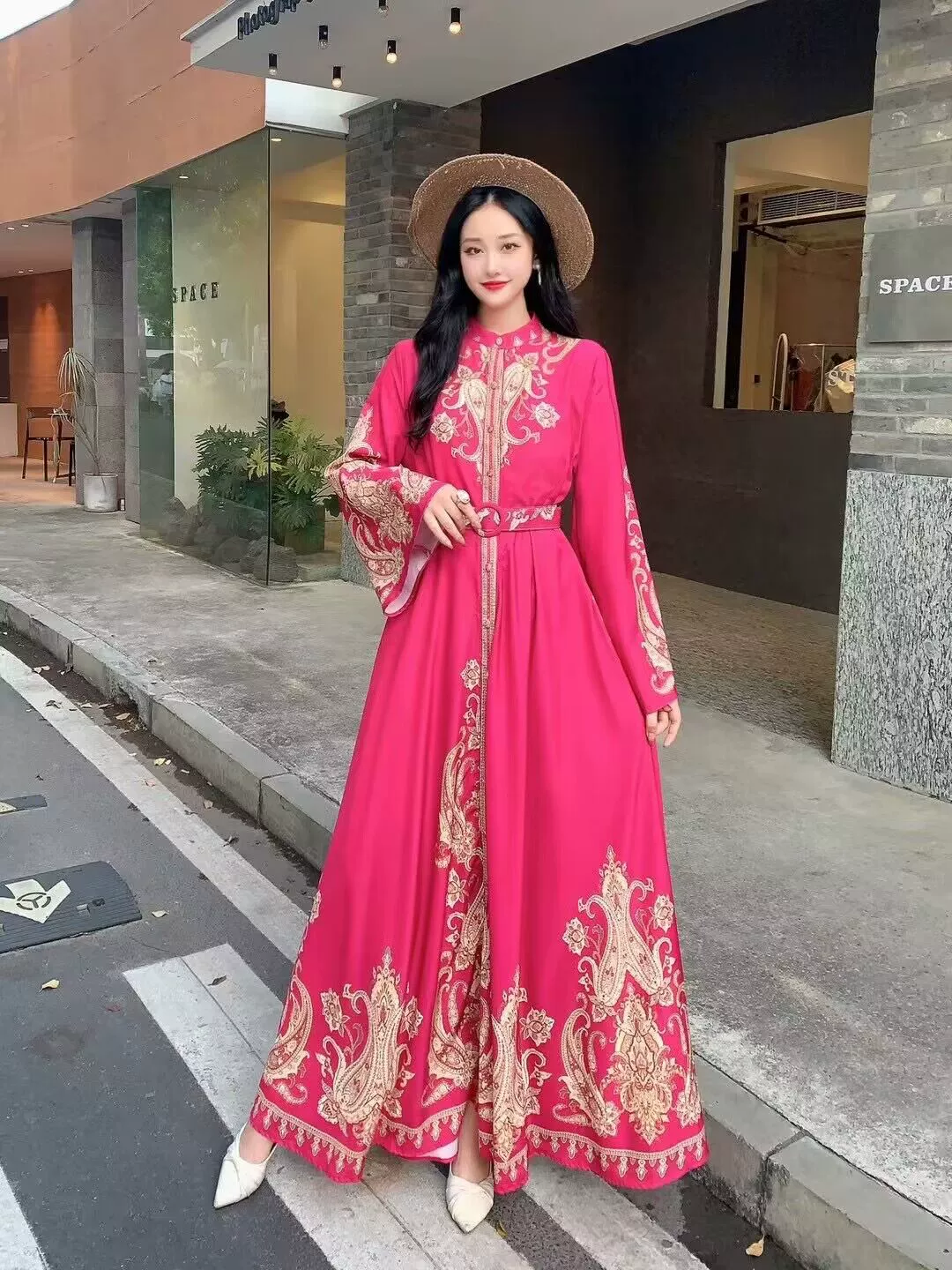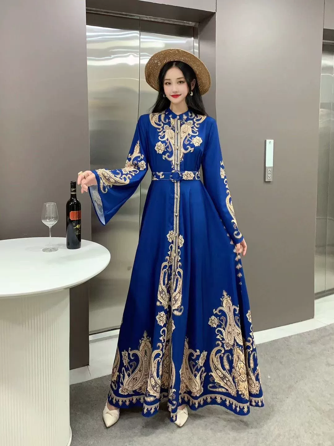 | nameOriginal | Palace retro style lantern sleeve single breasted shirt dress |