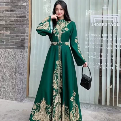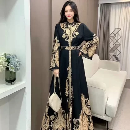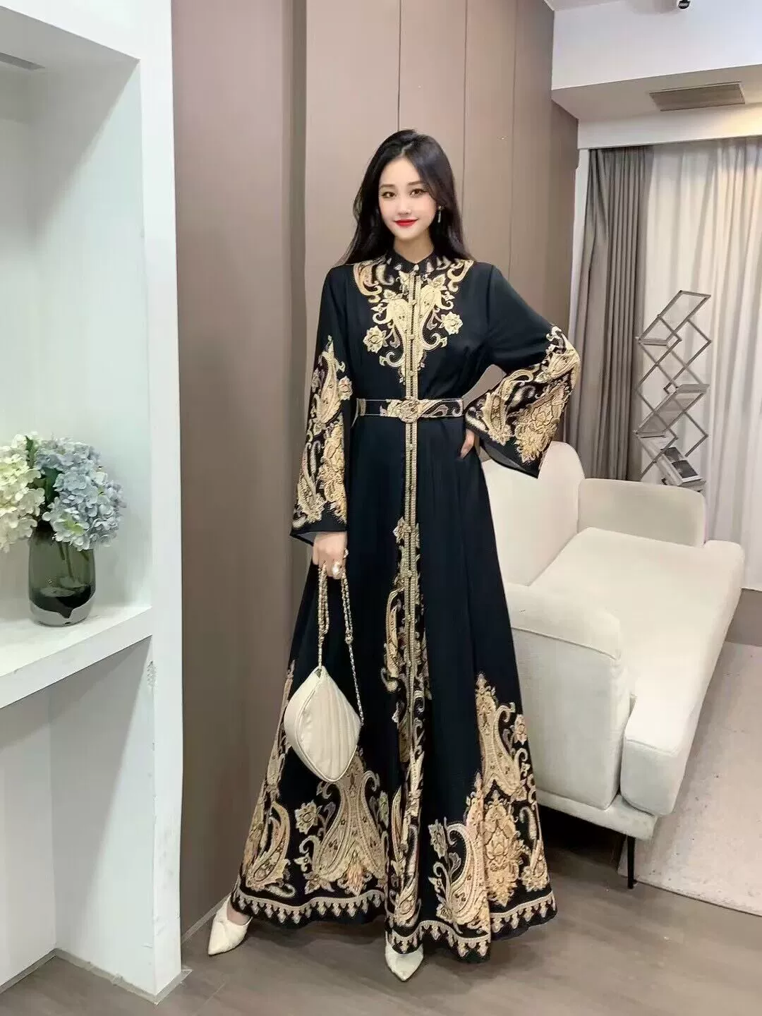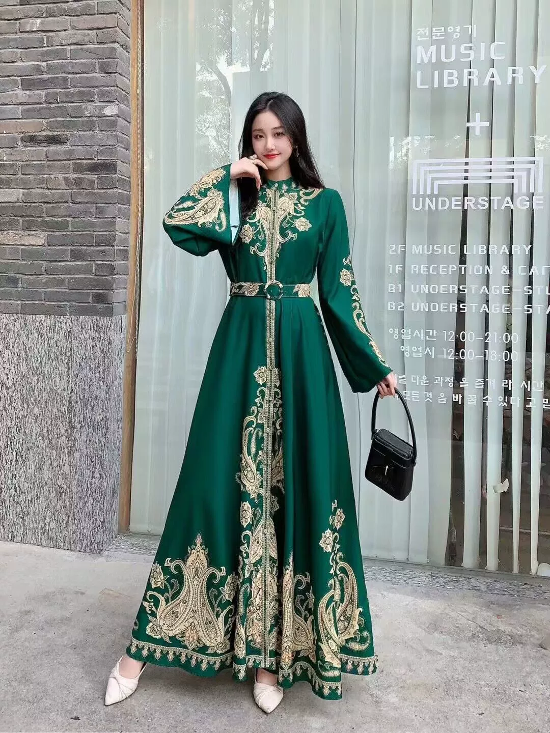 | nameOriginal | Palace retro style lantern sleeve single breasted shirt dress |