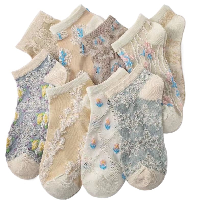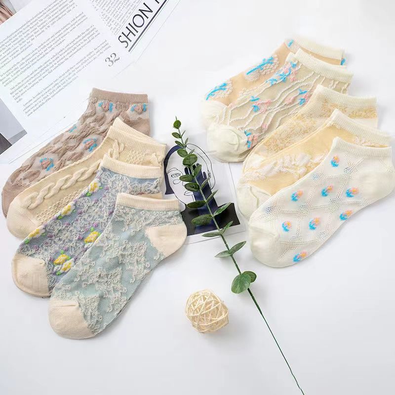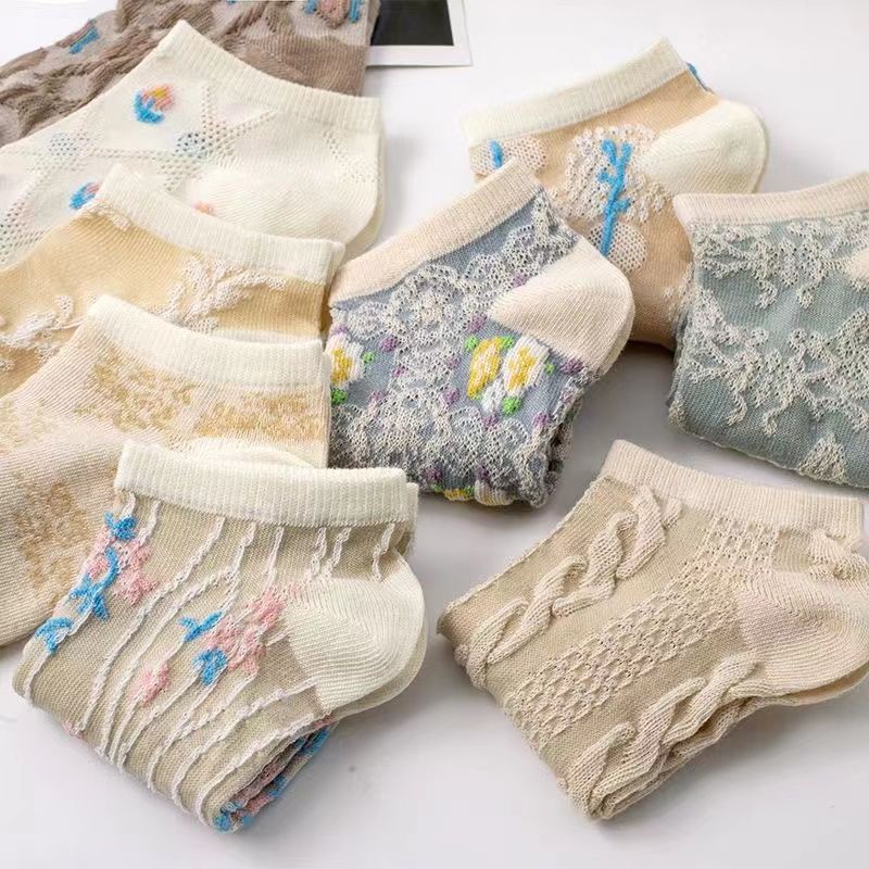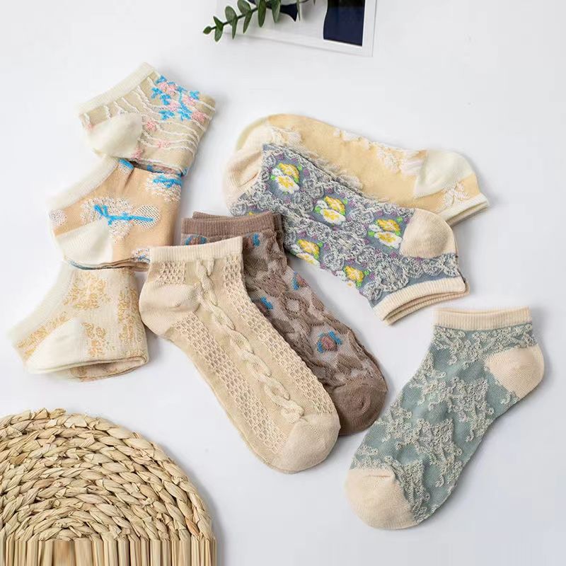 Palace Socks Women's Short Socks Summer Thin Ins Trendy All-Match Japanese Style Vintage Artistic Foot Three-Dimensional Embossed Boat Socks