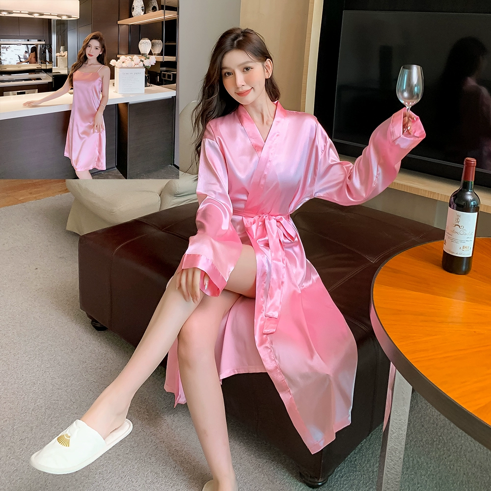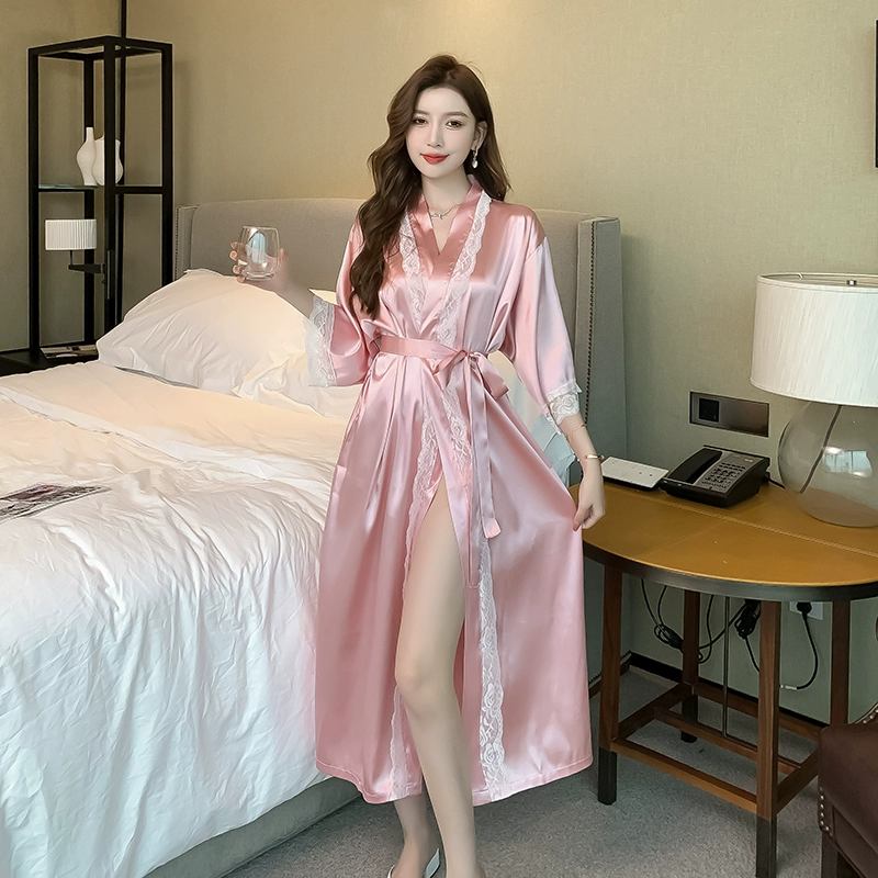 | nameOriginal | Palace-style high-end summer nightgown for women, bathrobe style summer pink dressing gown for sisters group party, mid-length for small people |